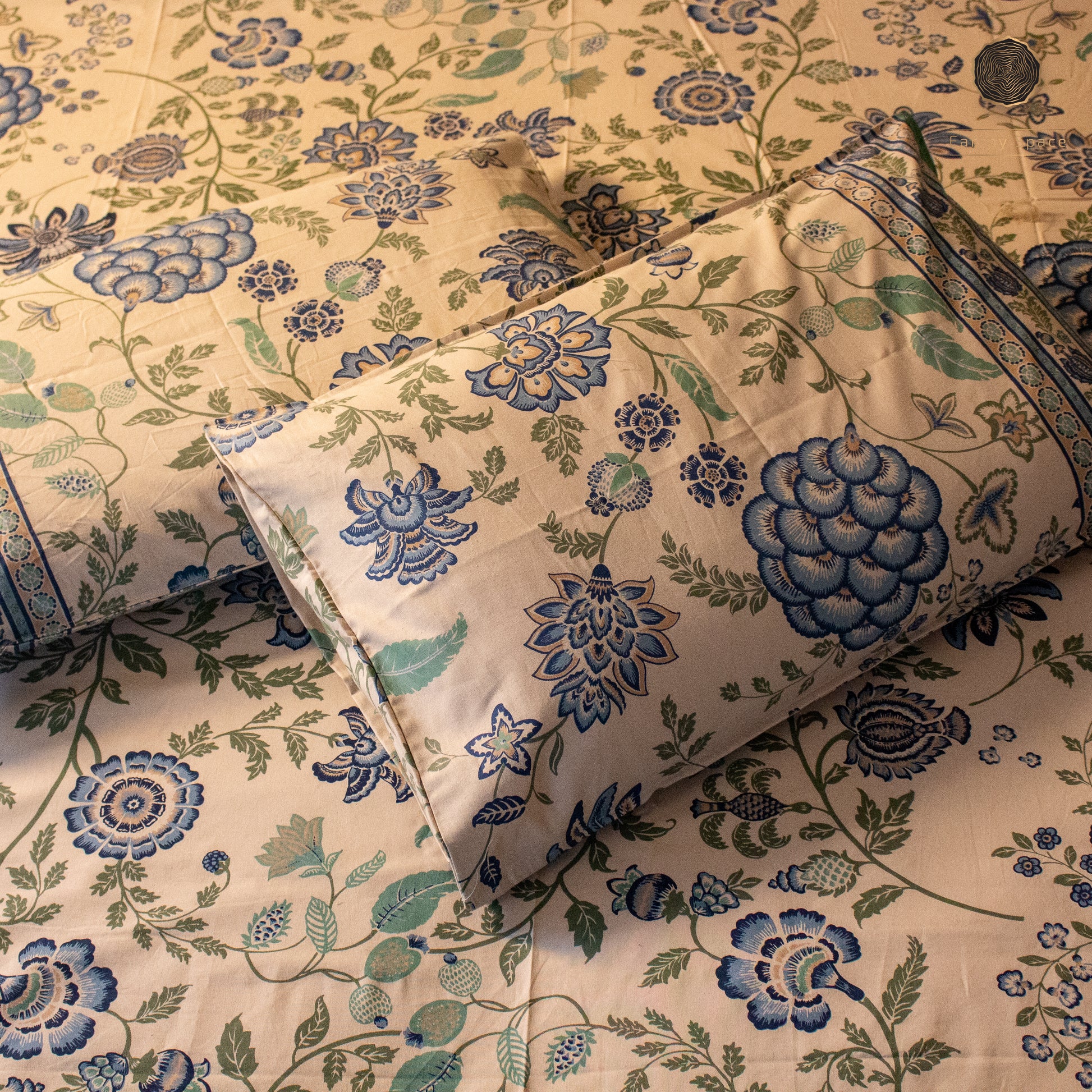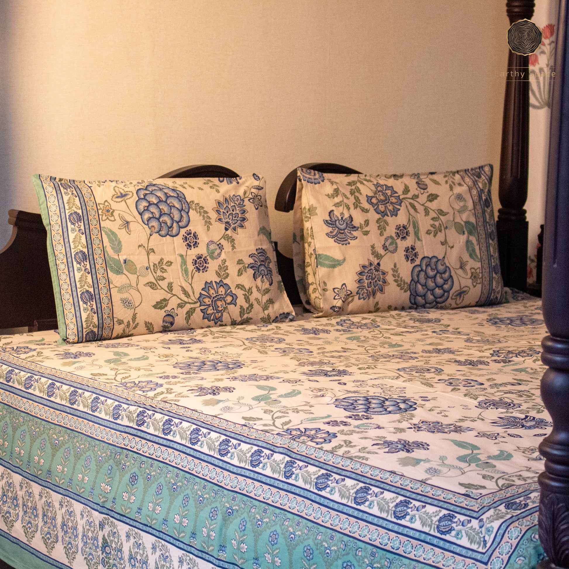 Bring home the timeless charm of Rajasthan with our Jaipuri-printed super king size bedsheet, designed for those who seek elegance without stretching their budget. Crafted from soft, breathable cotton and adorned with intricate paisley motifs in warm, earthy tones, this bedsheet blends everyday comfort with regal aesthetics.
