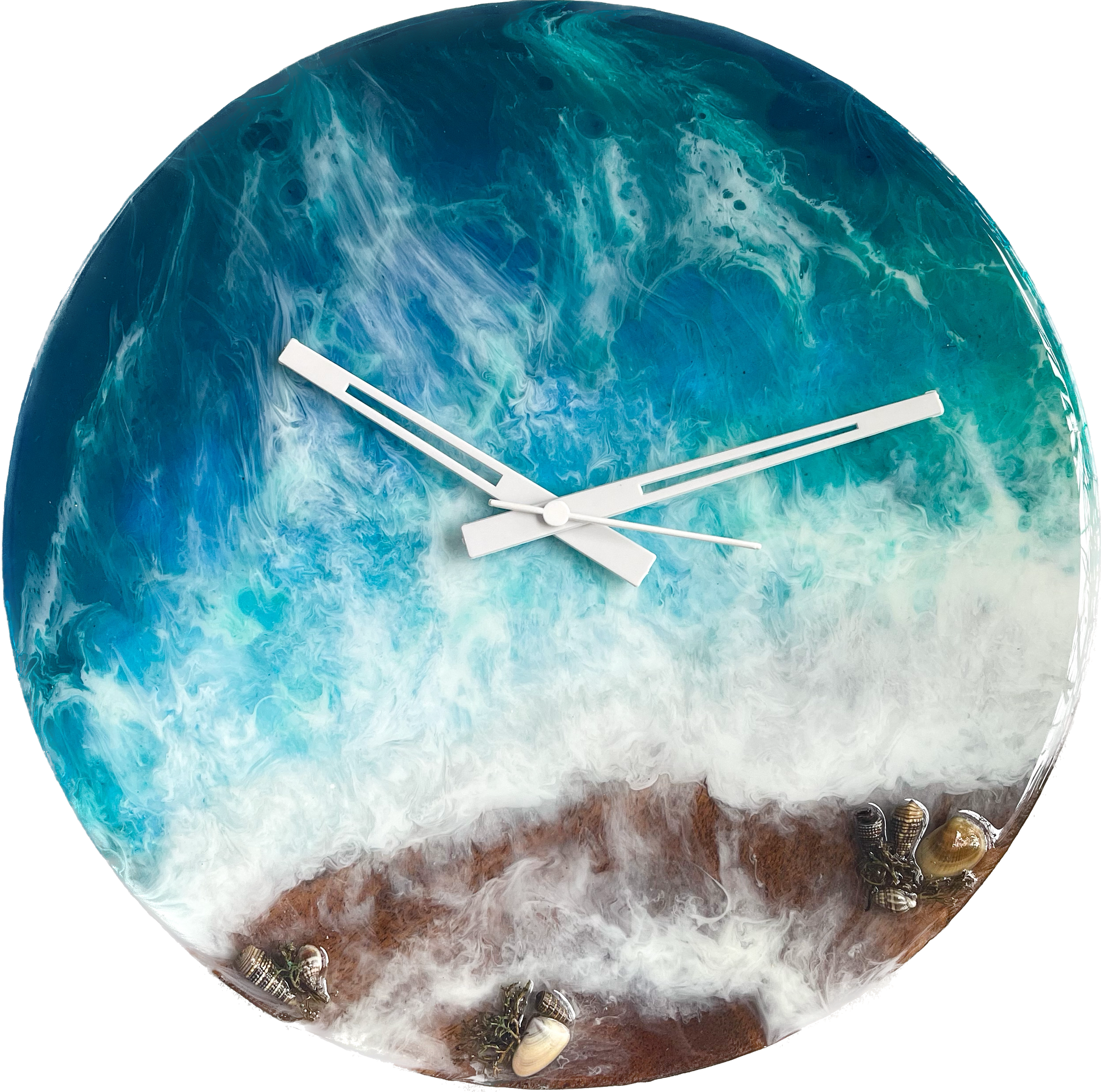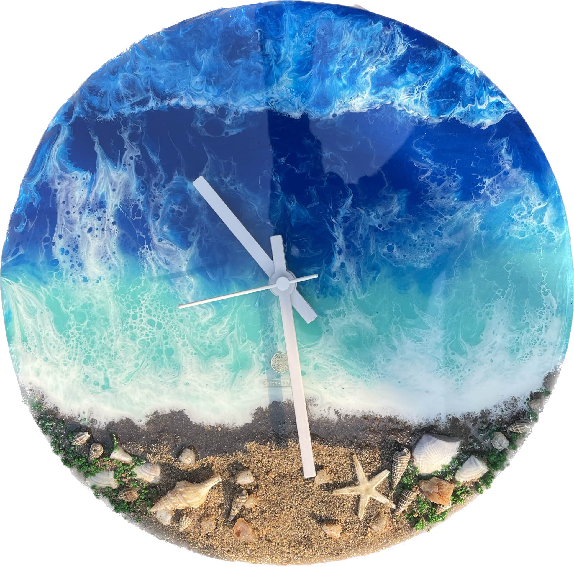 Beach-themed resin wall clocks are timepieces designed with a coastal theme, using sand, stones, and seashells. They bring a touch of the ocean and a relaxed atmosphere to any room in which they are placed. It's a perfect gifting option for all the beach lovers .