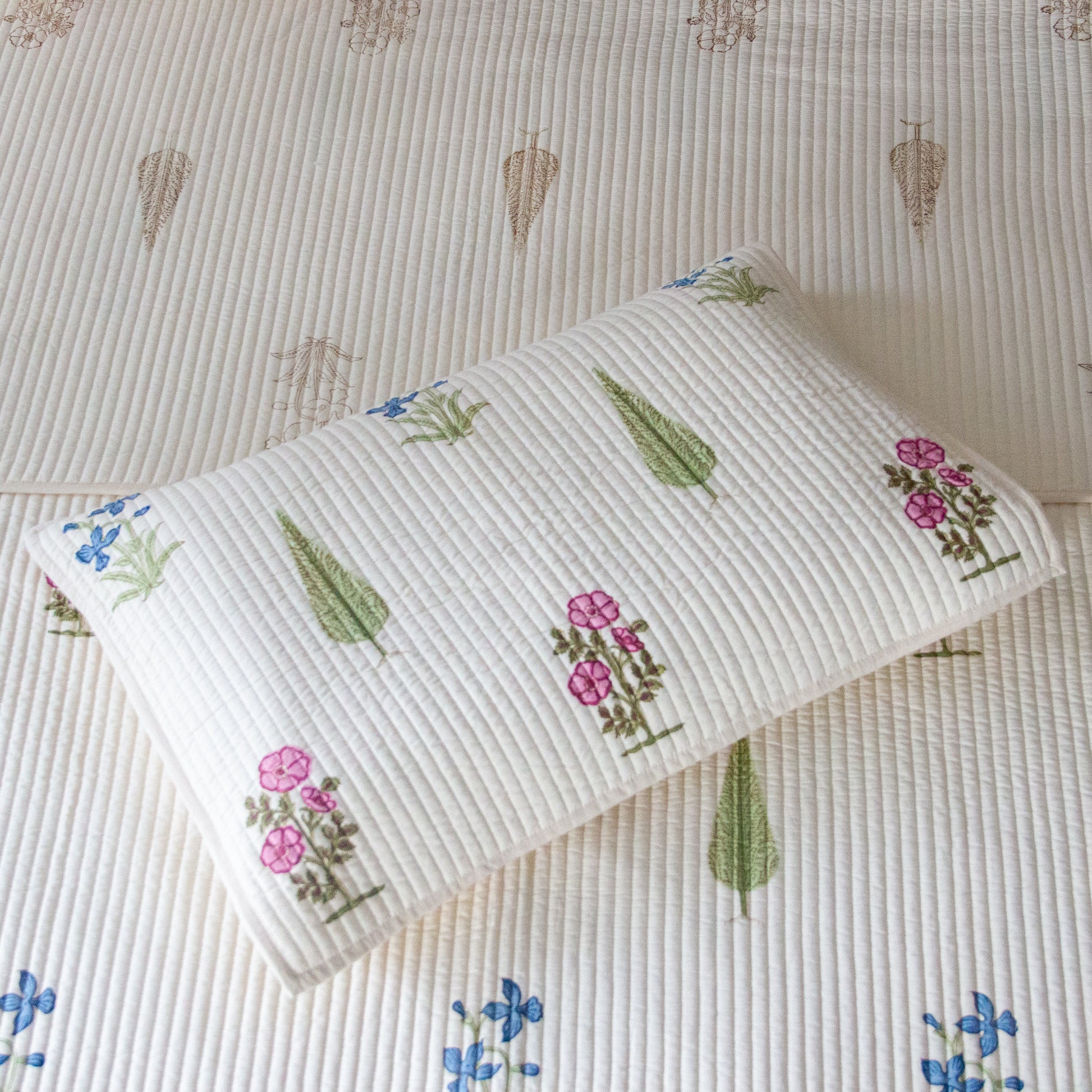 Reversible quilted bed covers are bedding accessories that are designed with a quilted construction, made by stitching together multiple layers of fabric to create a thick, warm cover that can be used to keep a bed cozy and comfortable. These bed covers have two different patterns or colours on each side, allowing you to switch up the look of your bedding depending on your mood or decor.