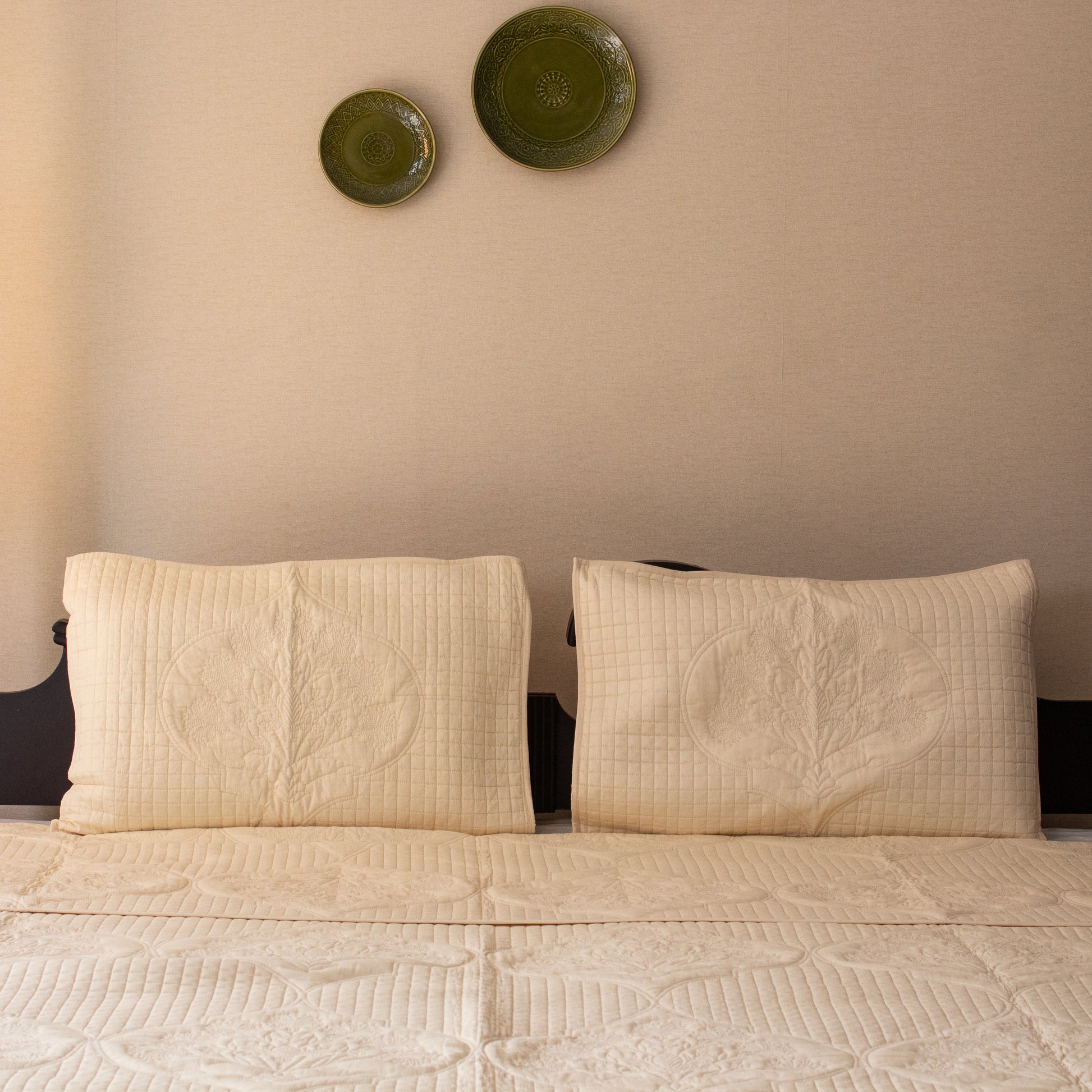 Reversible quilted bed covers are bedding accessories that are designed with a quilted construction, made by stitching together multiple layers of fabric to create a thick, warm cover that can be used to keep a bed cozy and comfortable. These bed covers have two different patterns or colours on each side, allowing you to switch up the look of your bedding depending on your mood or decor.