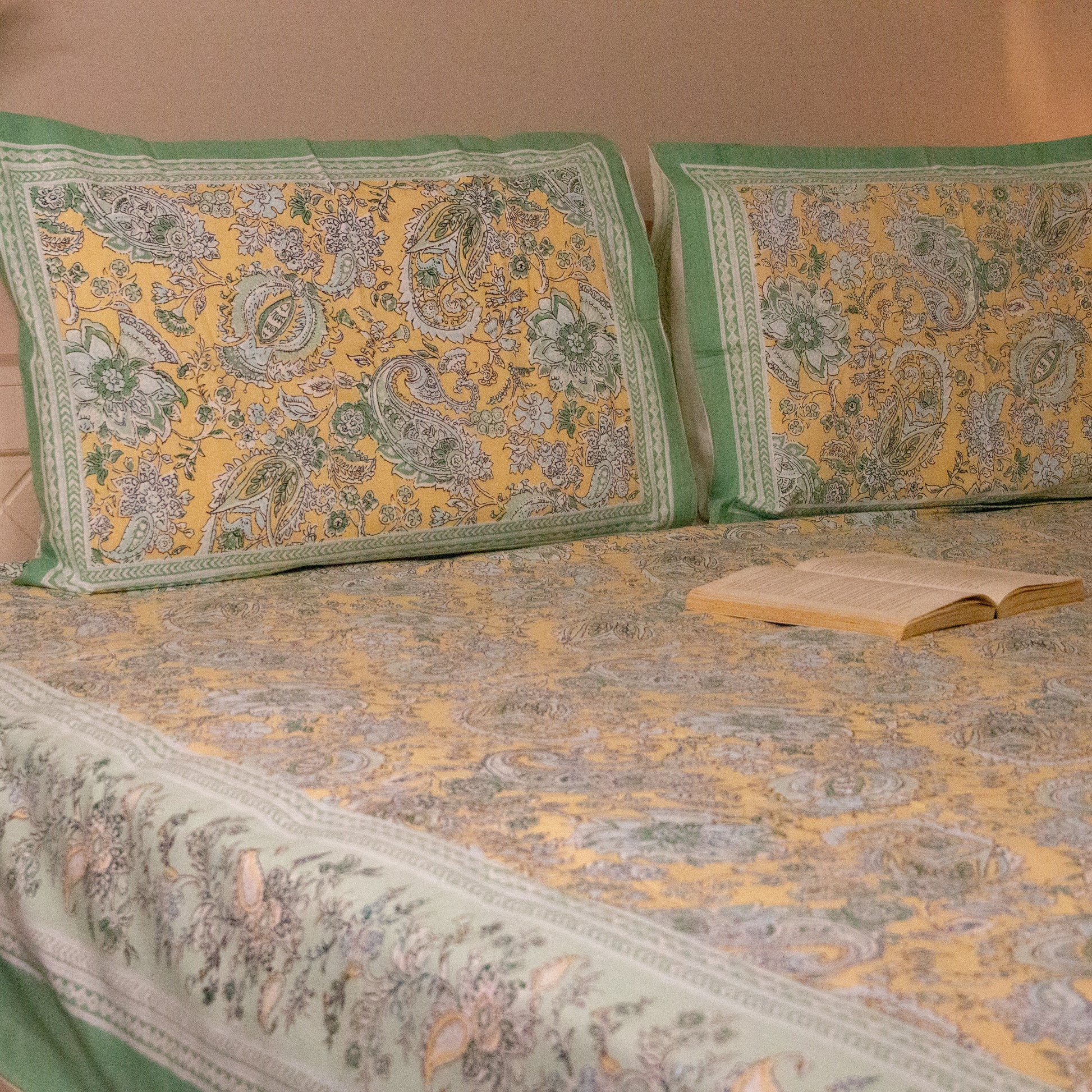 Printed bedsheets are bed linens that are adorned with intricate designs created using screen printing method. Each sheet is a canvas of rich, intricate patterns, meticulously hand-printed to infuse your space with cultural elegance