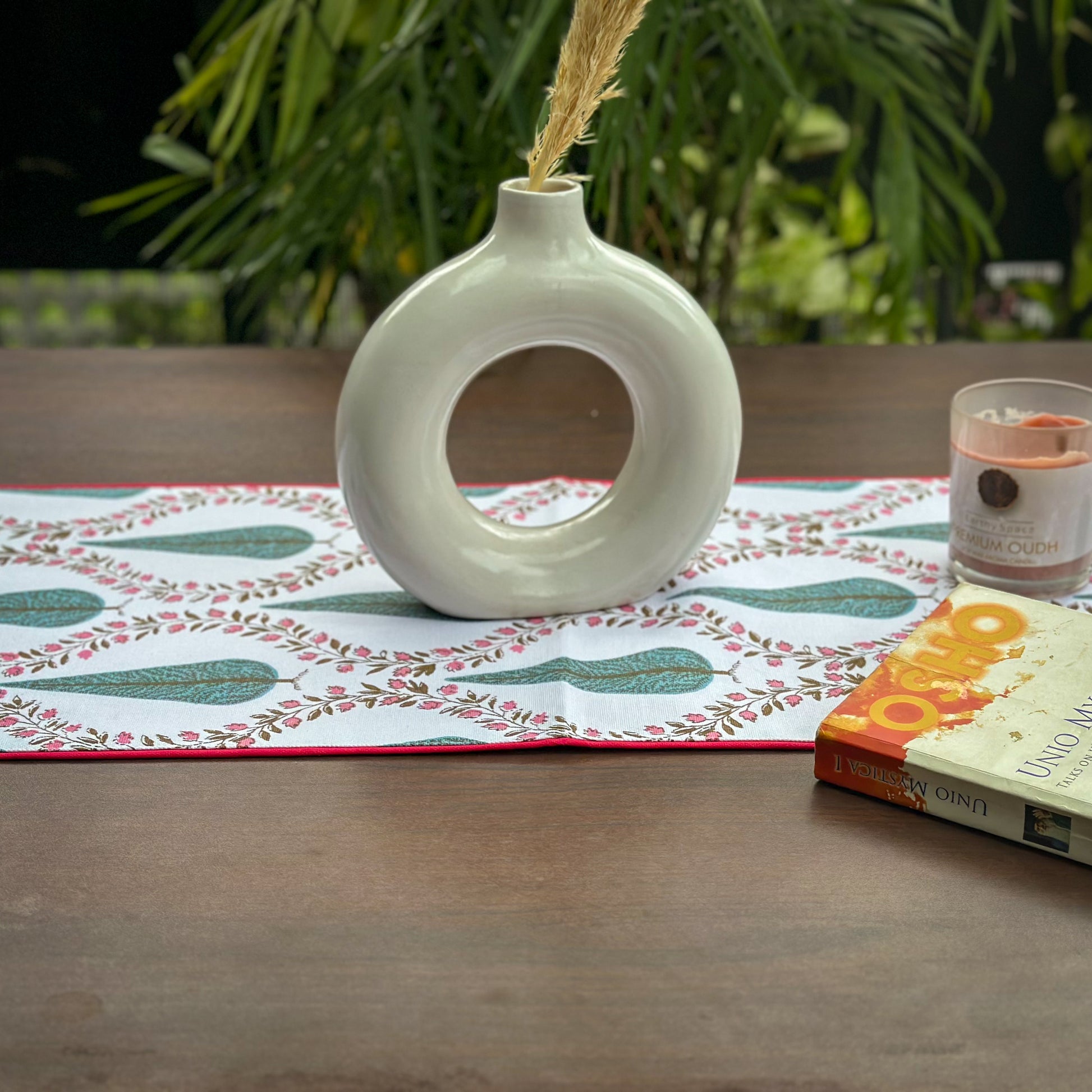 A hand block printed table runner is a decorative textile accessory designed to enhance and elevate your dining or display table. Each runner is meticulously crafted using the traditional technique of hand block printing, where intricate patterns are carved onto wooden blocks and then dipped in dye to transfer the design onto the fabric.
