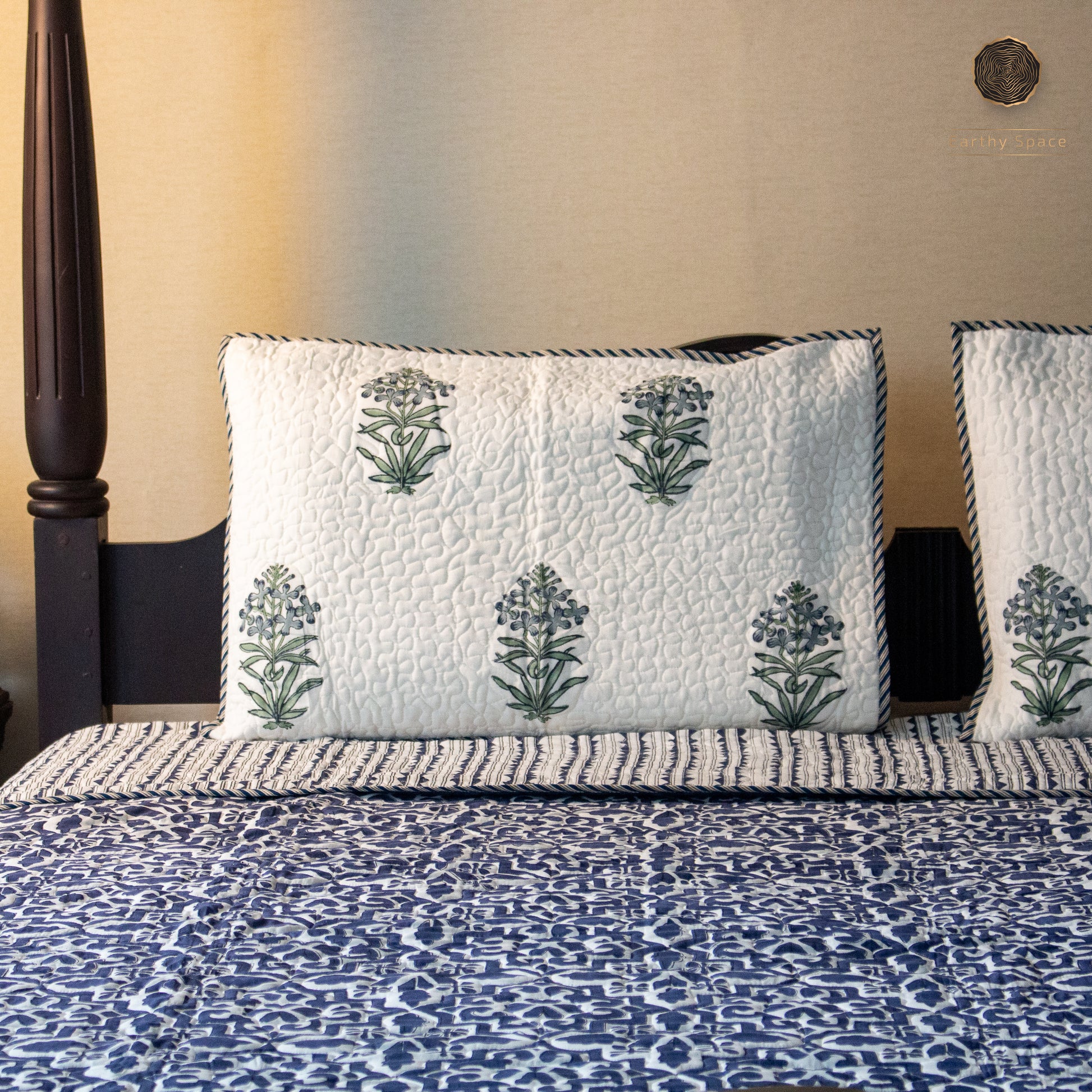 Reversible quilted bed covers are bedding accessories that are designed with a quilted construction, made by stitching together multiple layers of fabric to create a thick, warm cover that can be used to keep a bed cozy and comfortable. These bed covers have two different patterns or colours on each side, allowing you to switch up the look of your bedding depending on your mood or decor.
