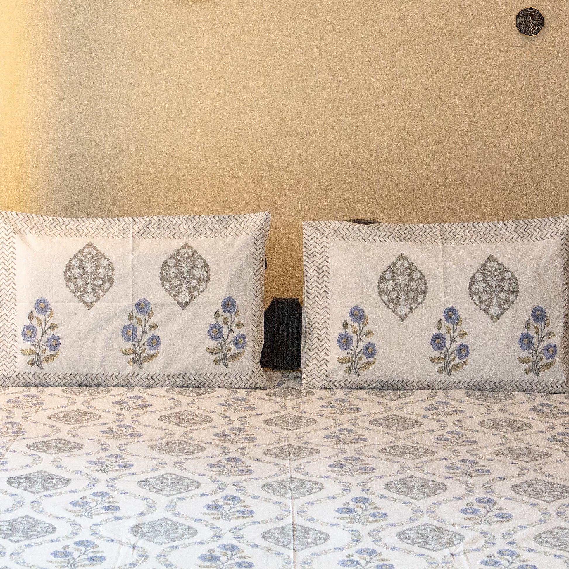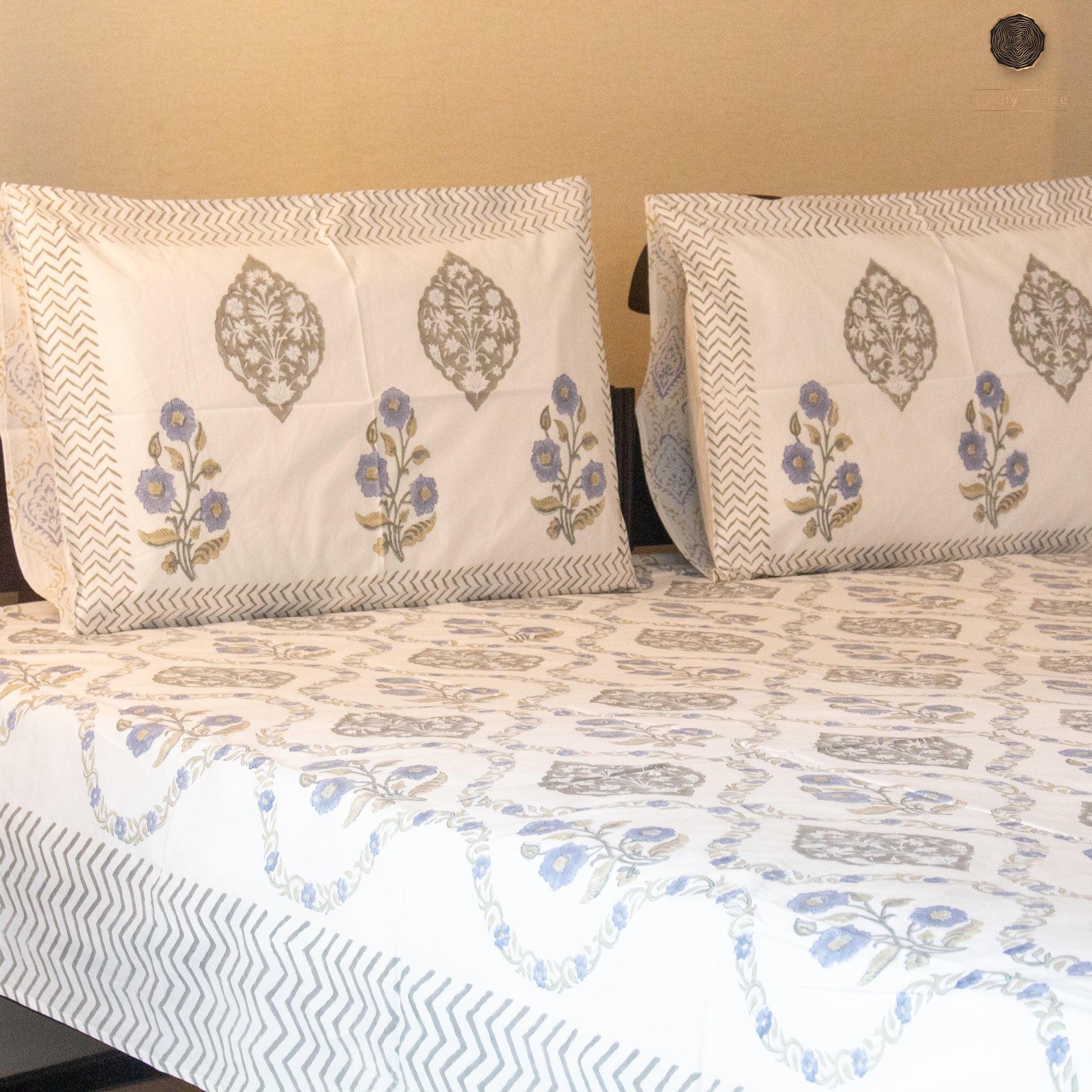 Blue Munroe Jaal Handblock Printed Bedsheet