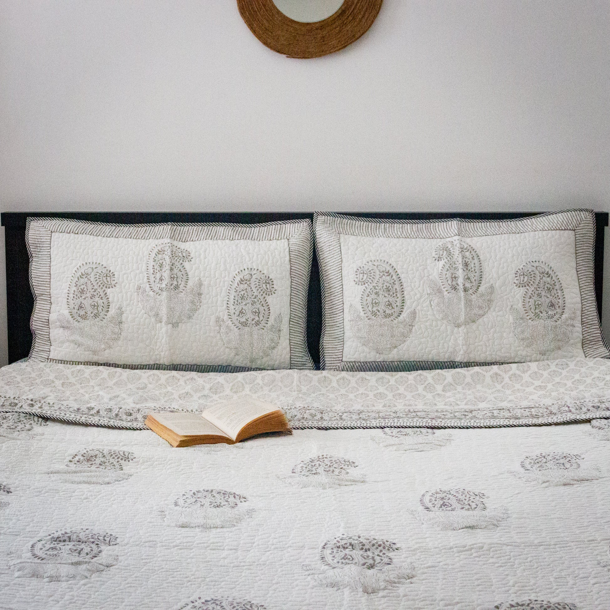 Canopy Grey Hand Block Printed Quilted Bed Cover