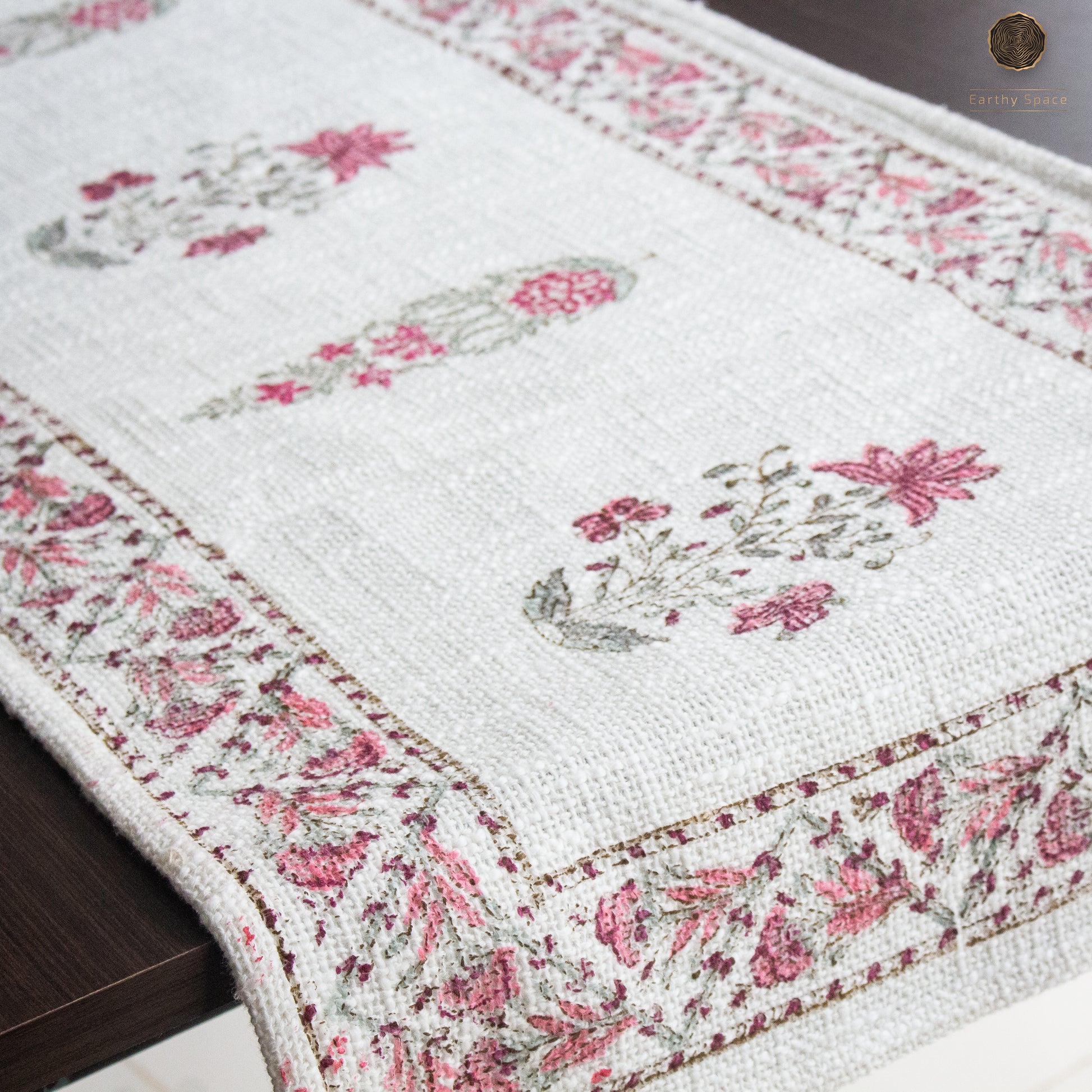 A hand block printed table runner is a decorative textile accessory designed to enhance and elevate your dining or display table. Each runner is meticulously crafted using the traditional technique of hand block printing, where intricate patterns are carved onto wooden blocks and then dipped in dye to transfer the design onto the fabric.