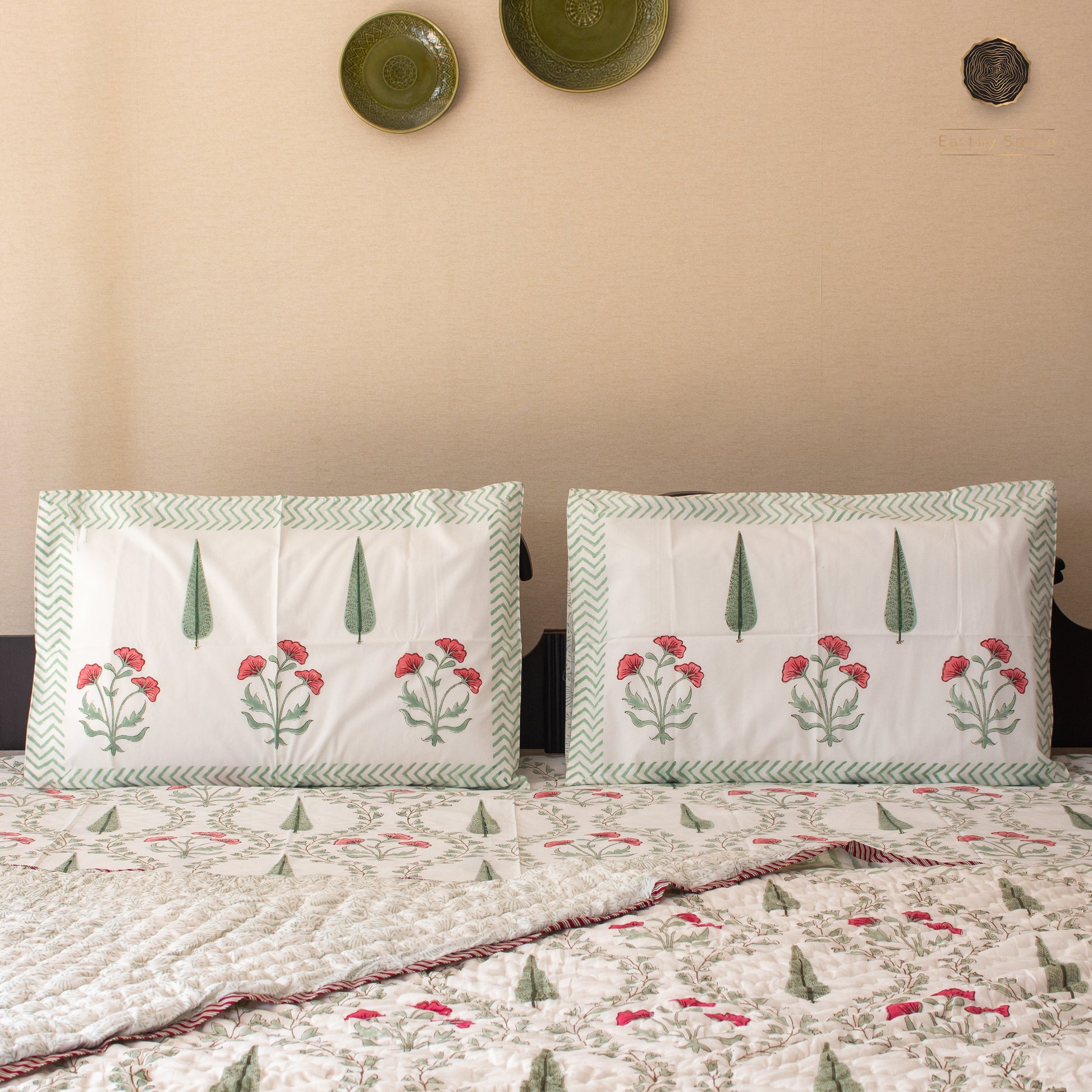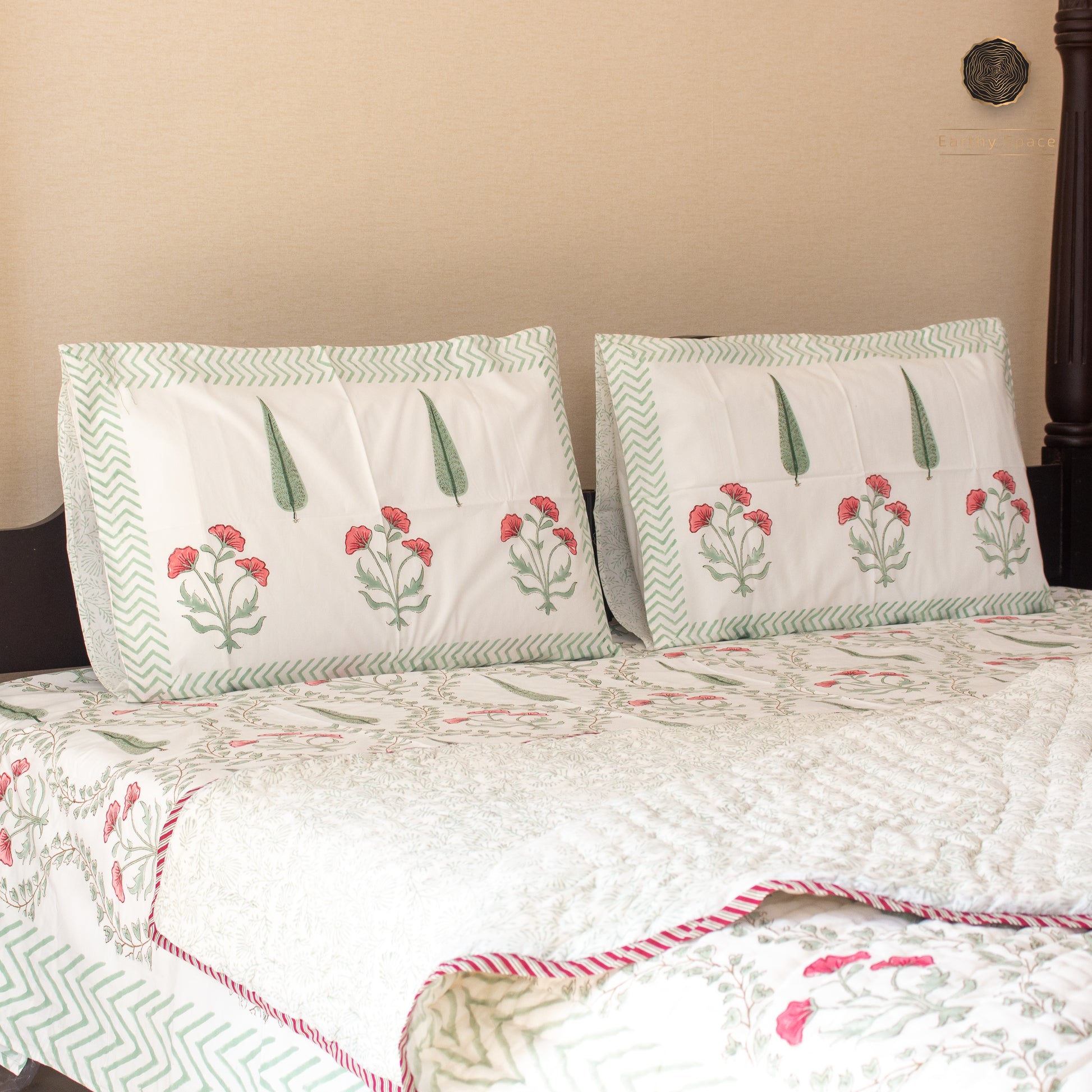 Elevate your home with the Timeless Beauty of Handblock Printed Bedsheets and Quilt Sets. Immerse yourself in the artistry and heritage of our collection, meticulously crafted by skilled artisans using traditional handblock printing techniques. Each piece is a masterpiece, showcasing intricate patterns and vibrant colors that add a touch of elegance to any bedroom.