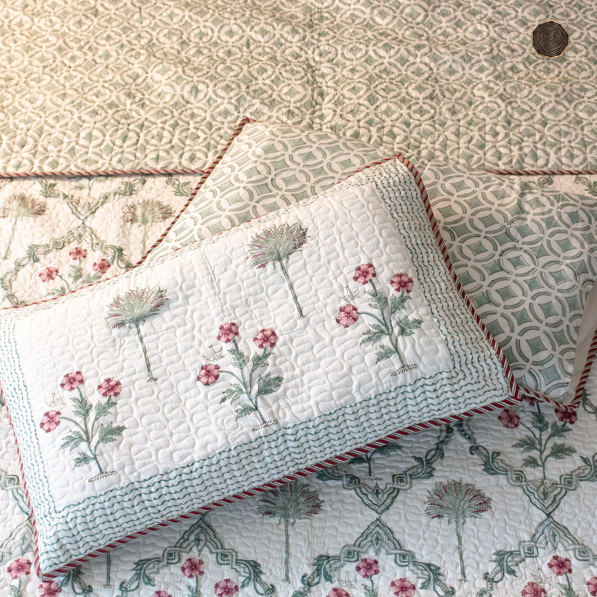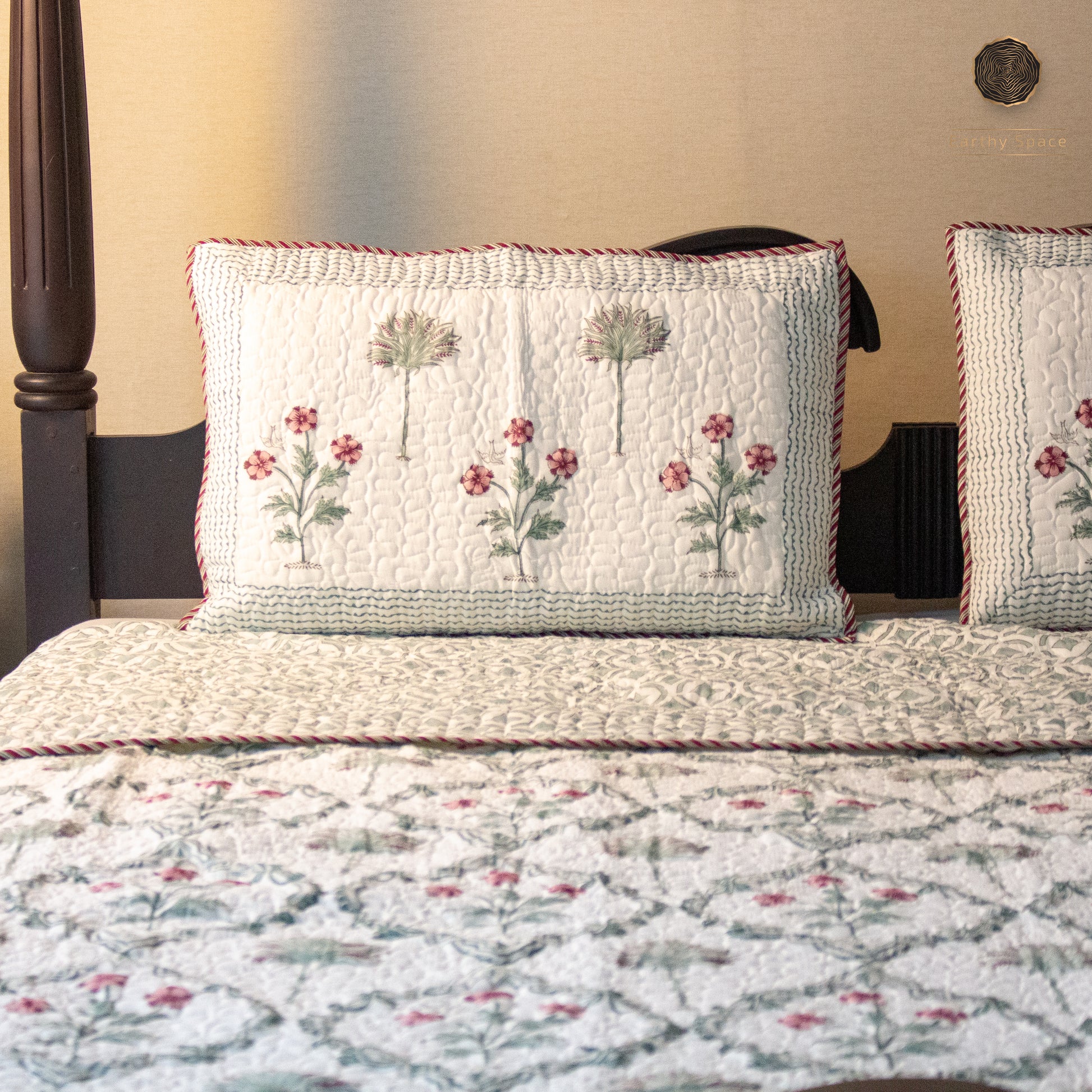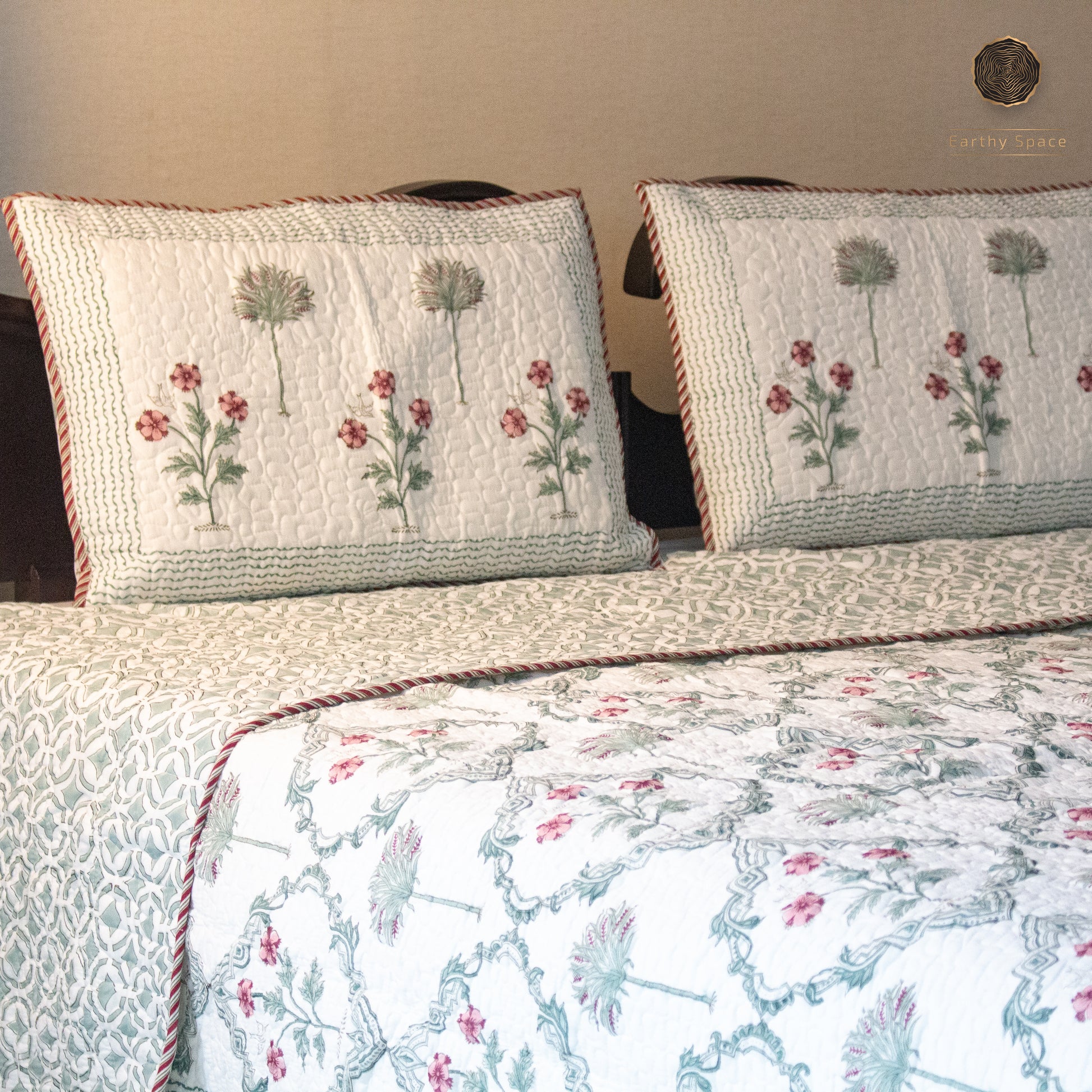 Gardenia Blooms Hand Block Printed Quilted Bedspread
