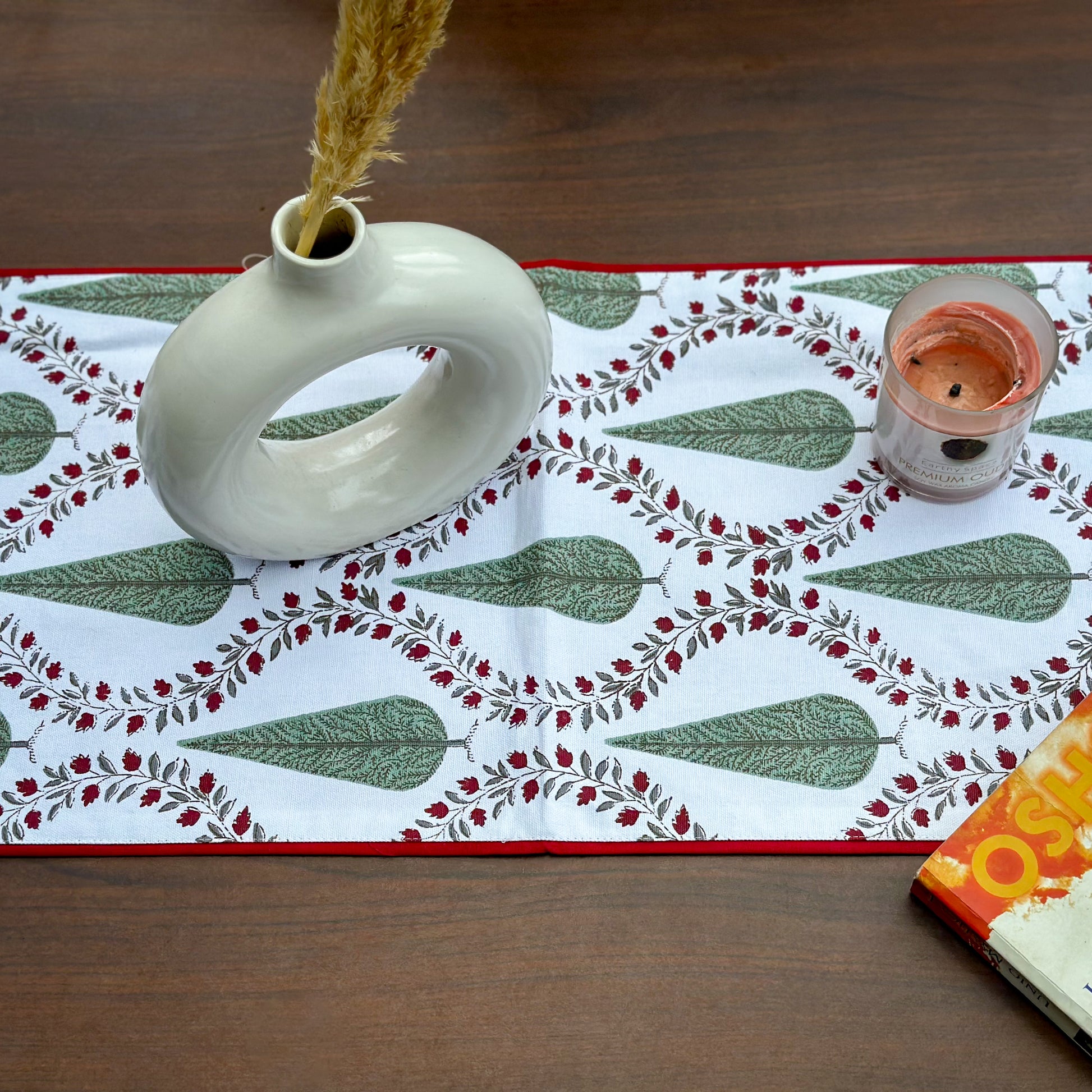 A hand block printed table runner is a decorative textile accessory designed to enhance and elevate your dining or display table. Each runner is meticulously crafted using the traditional technique of hand block printing, where intricate patterns are carved onto wooden blocks and then dipped in dye to transfer the design onto the fabric.