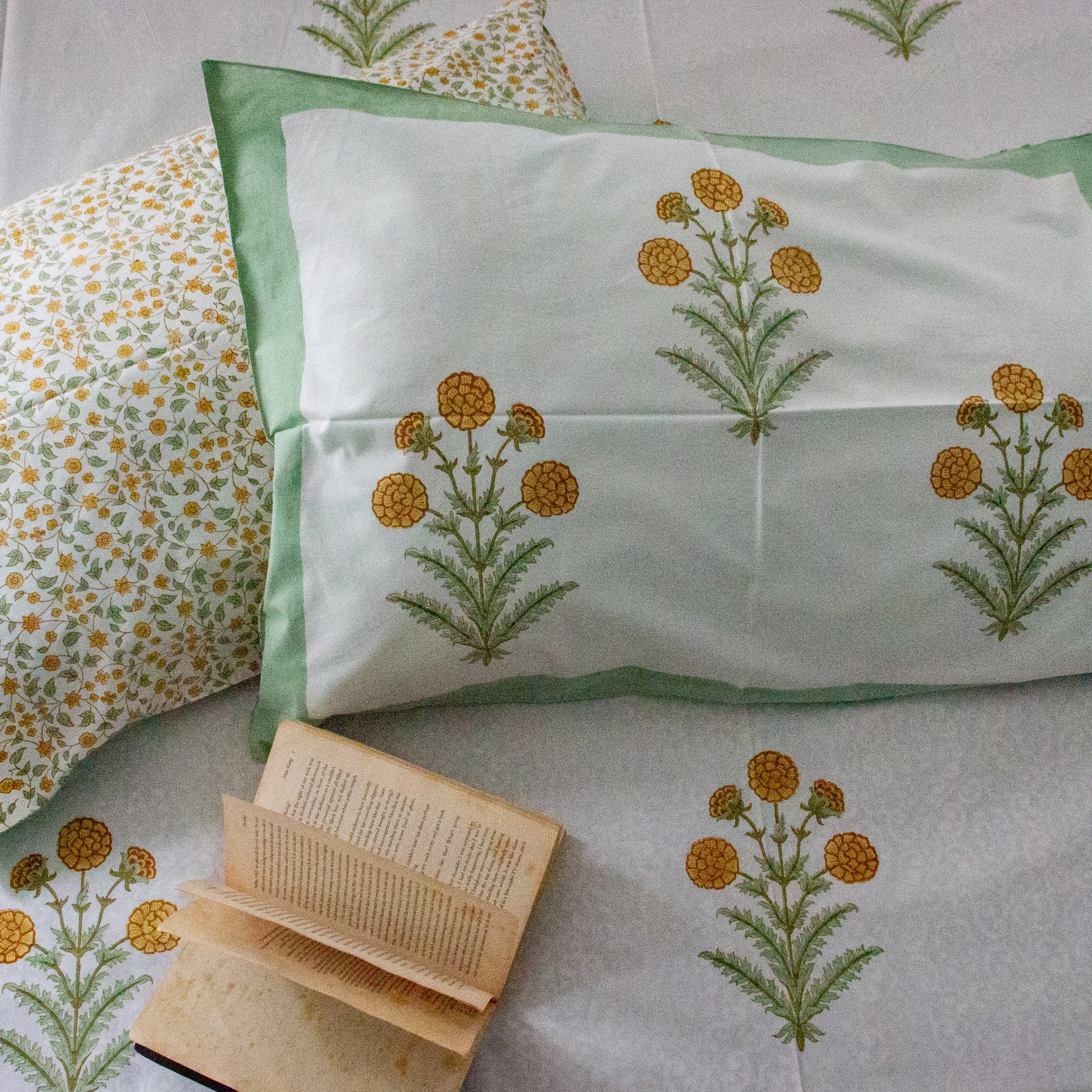 Tropical Green Hand Block Printed Bed Sheets
