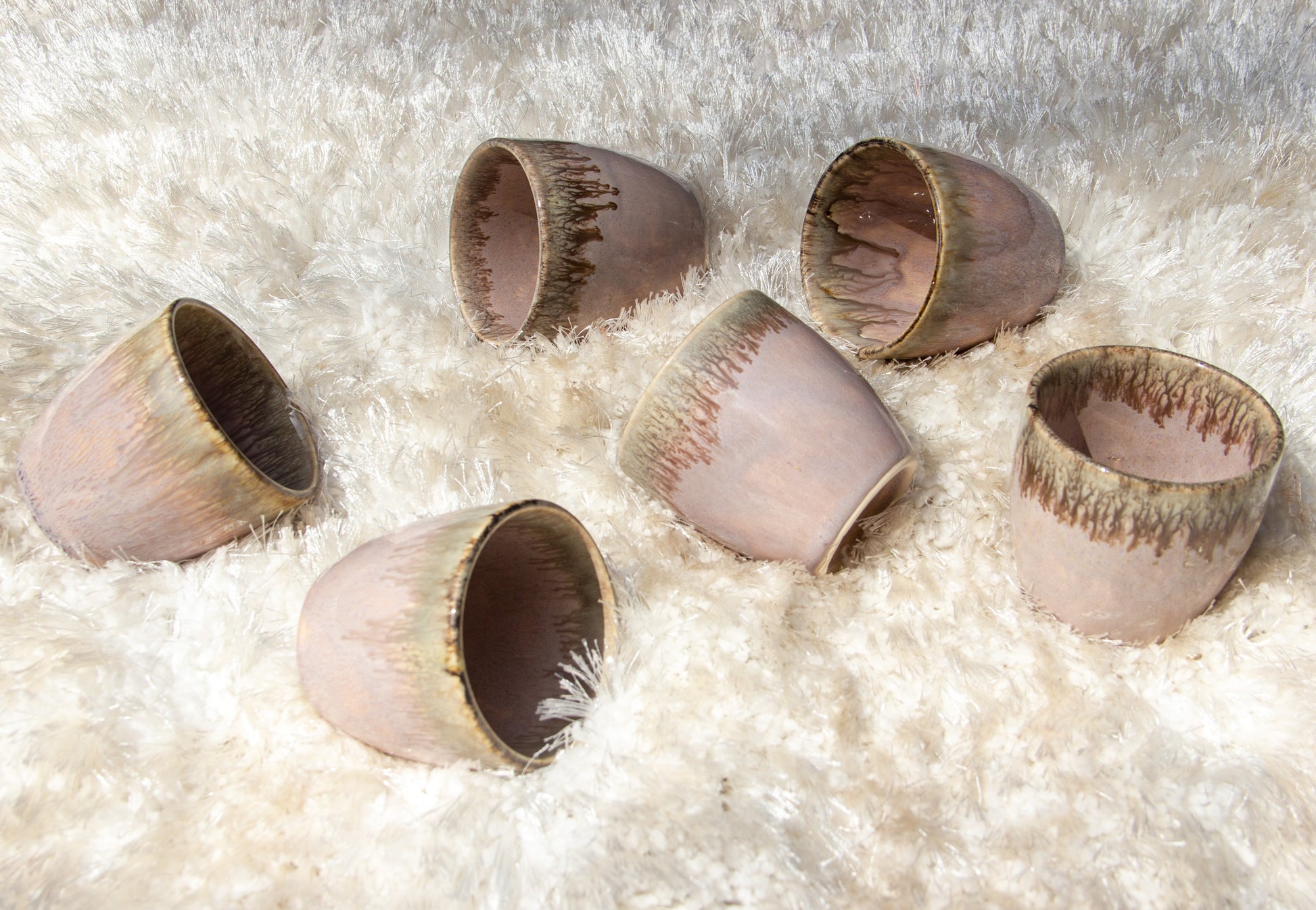 Handmade ceramic glasses are drinking vessels made from clay that is shaped and fired in a kiln, with a glazed or unglazed finish. These glasses can vary in style, design, and size, and often feature unique, one-of-a-kind patterns and textures. Handmade ceramic glasses are valued for their durability, heat retention, and the tactile experience they provide. They are a popular choice among those who appreciate the artistry and craftsmanship of handmade objects and want to enjoy their beverages in a beautiful and functional vessel.