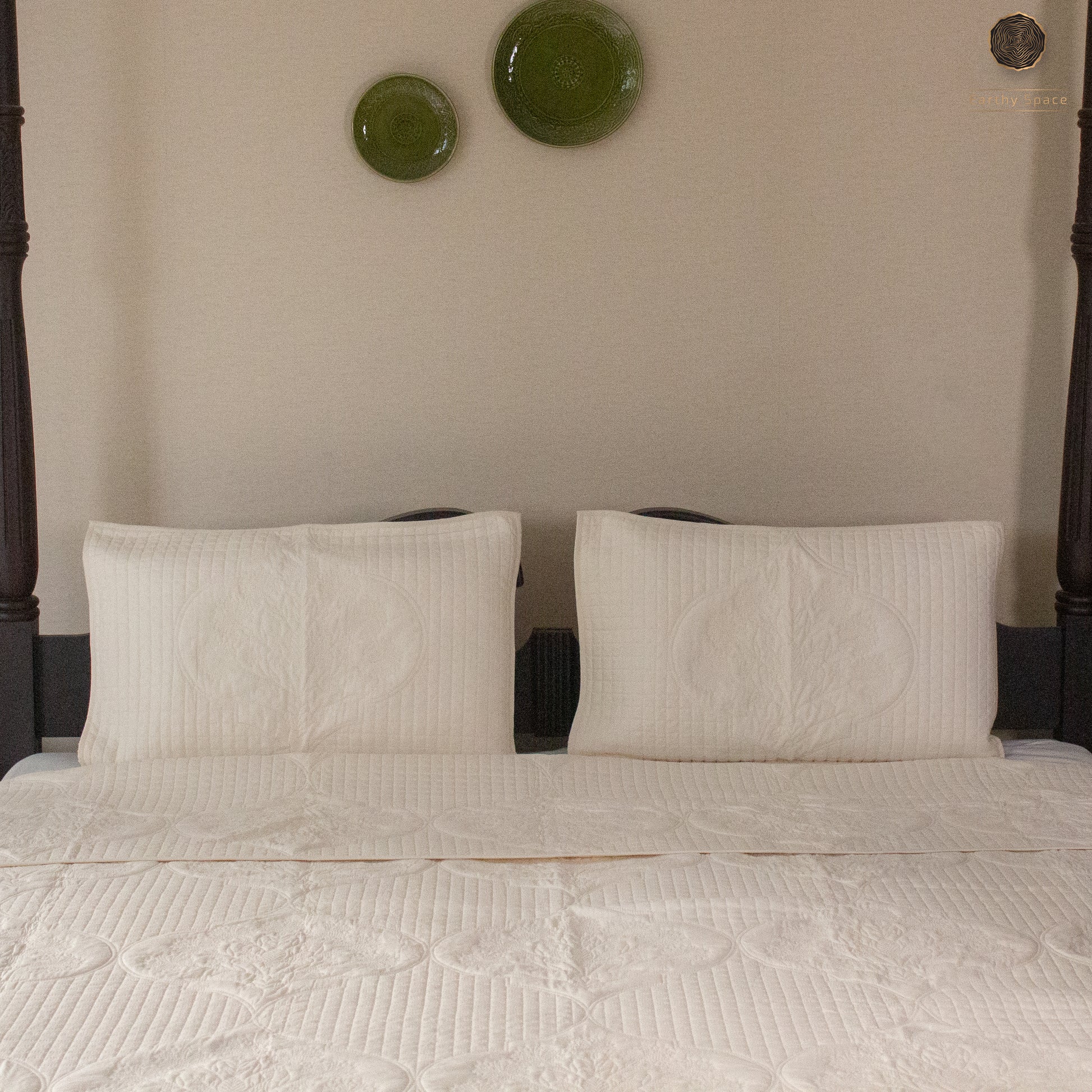 Reversible quilted bed covers are bedding accessories that are designed with a quilted construction, made by stitching together multiple layers of fabric to create a thick, warm cover that can be used to keep a bed cozy and comfortable.