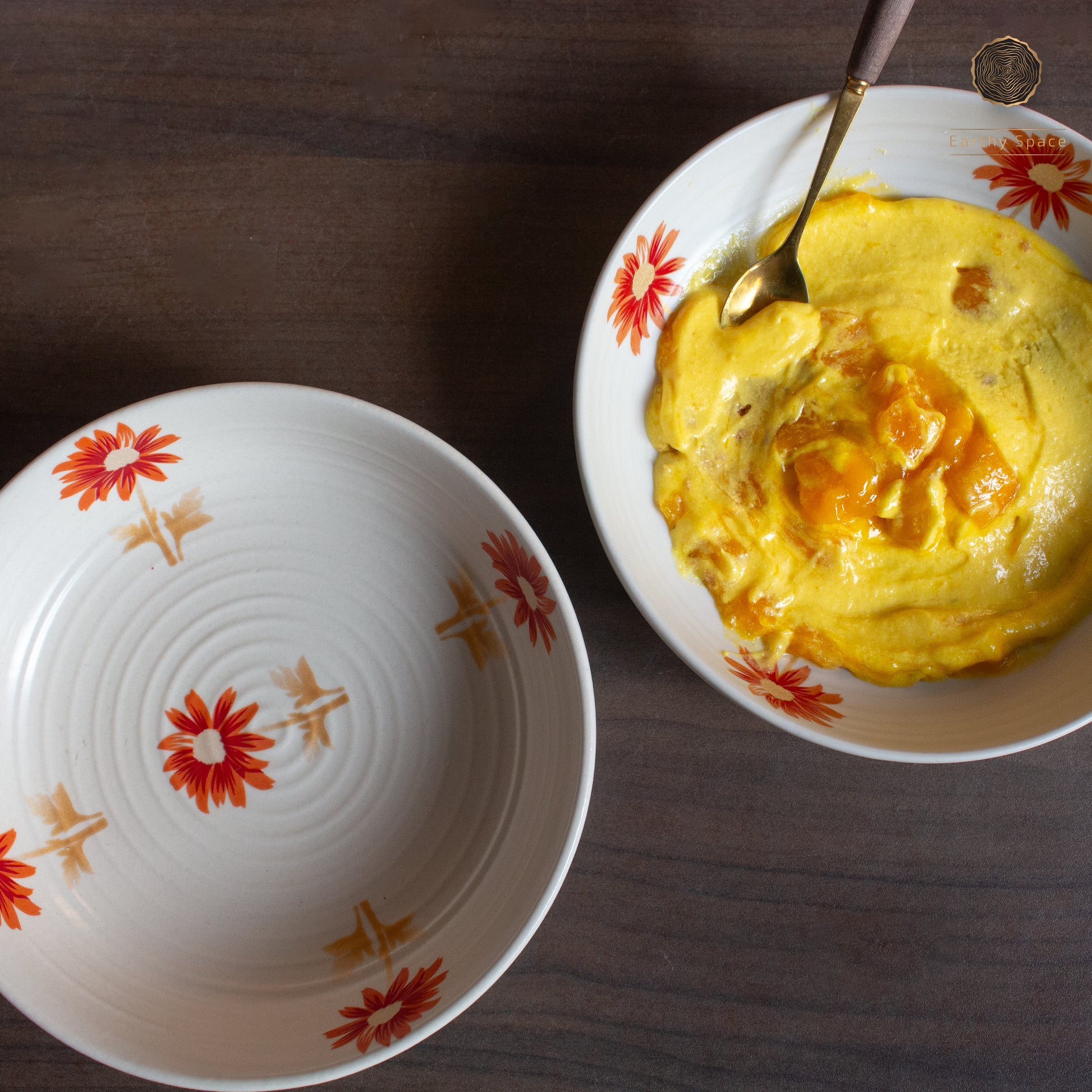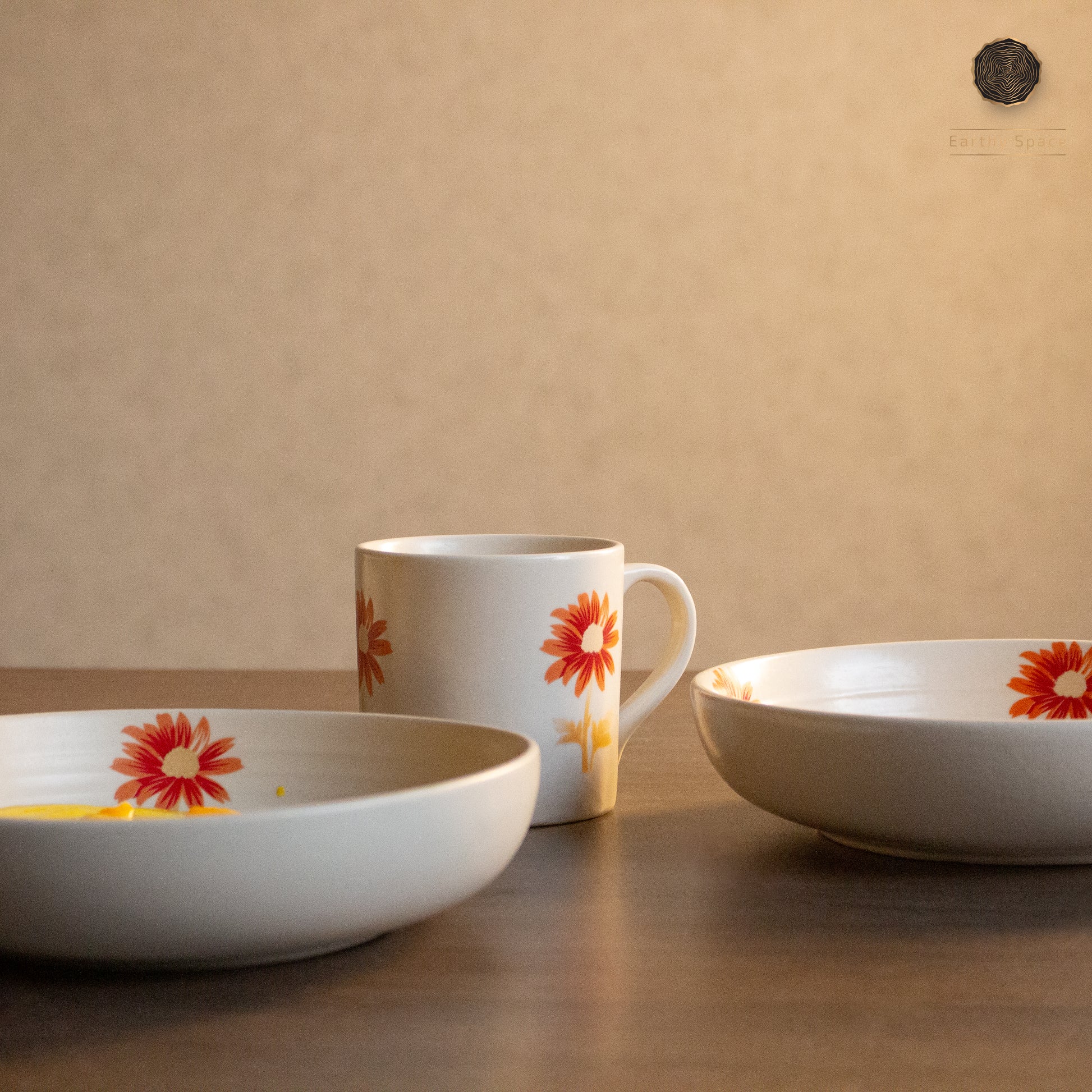 These ceramic bowls feature hand-painted floral motifs in warm orange and golden hues, adding a cheerful, artisanal touch to your table. Their shallow form and smooth finish make them ideal for serving snacks, salads, or side dishes with elegance.
