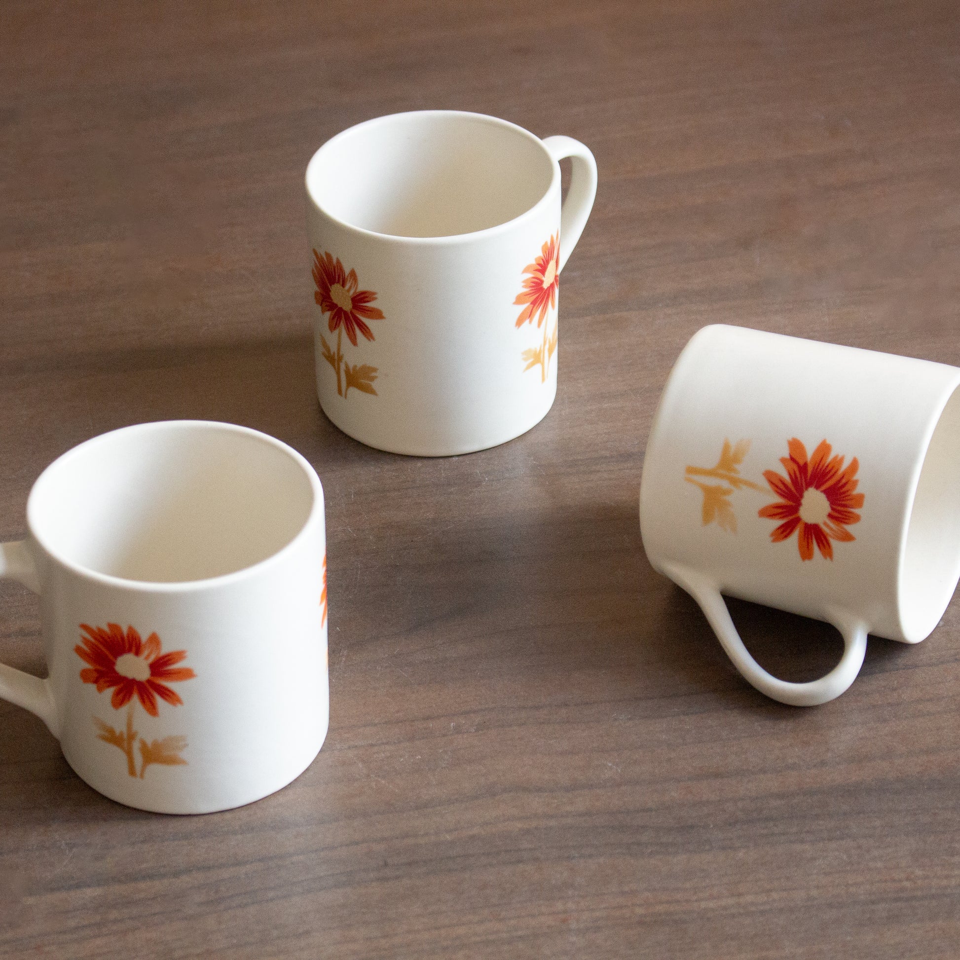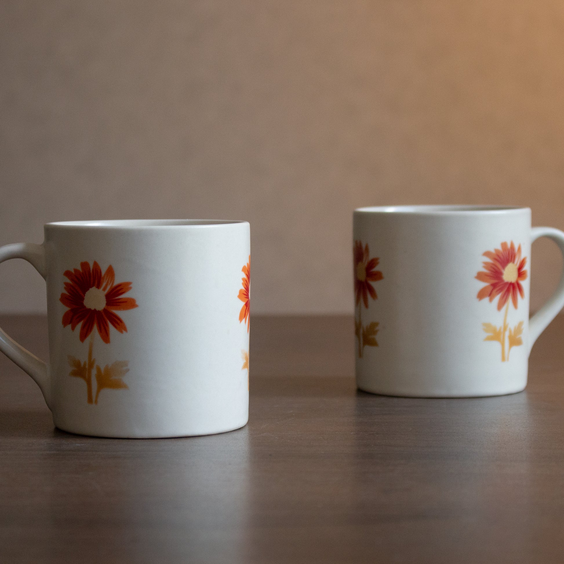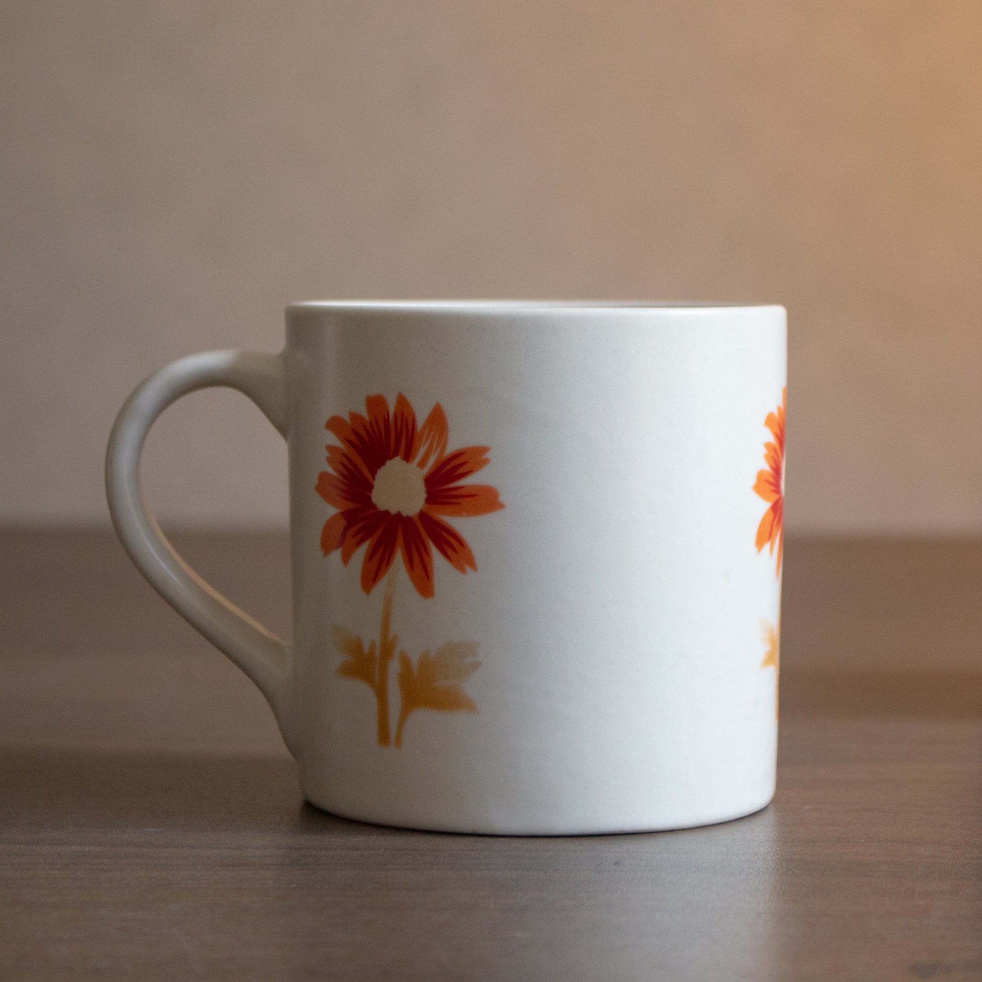 This charming ceramic mug features hand-painted floral motifs in vibrant red and orange tones, bringing a cheerful and cozy vibe to your tea or coffee moments. A perfect blend of functionality and artisanal beauty.