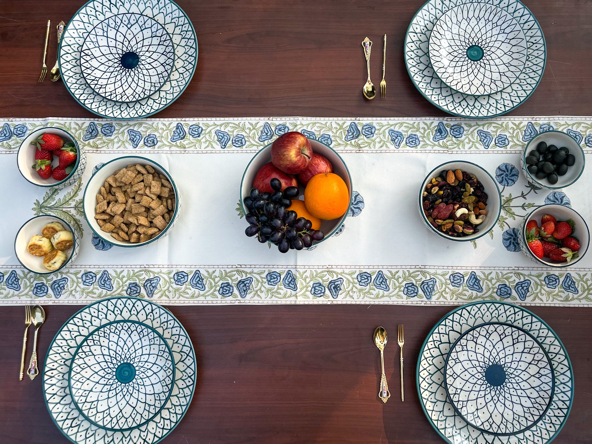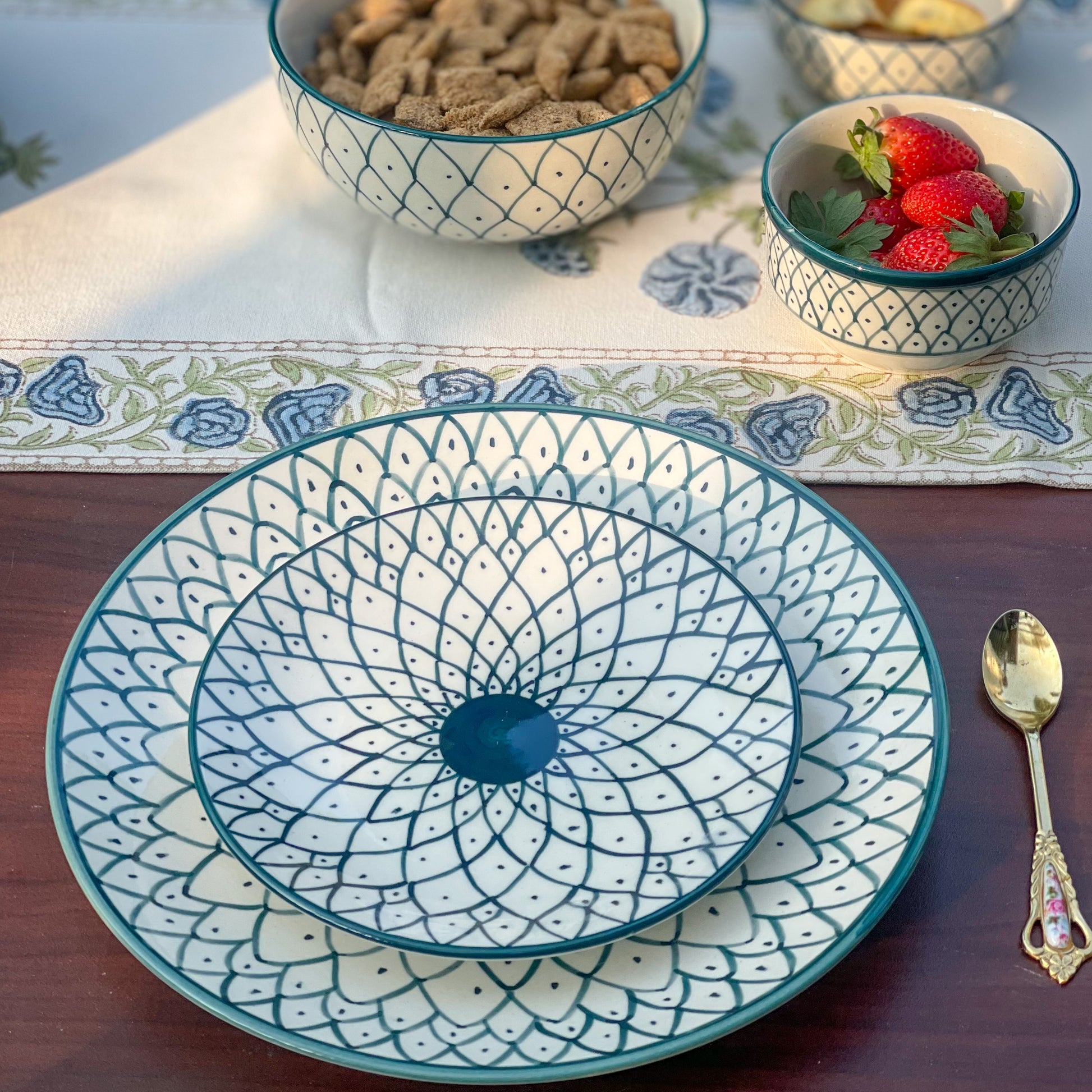 Hand painted ceramic sets are unique, high-quality pieces of functional art. With intricate designs and patterns, they add a personal touch to any home decor. Blue strings, hand painted ceramic dinner set will be a timeless addition to any kitchen or dining table.