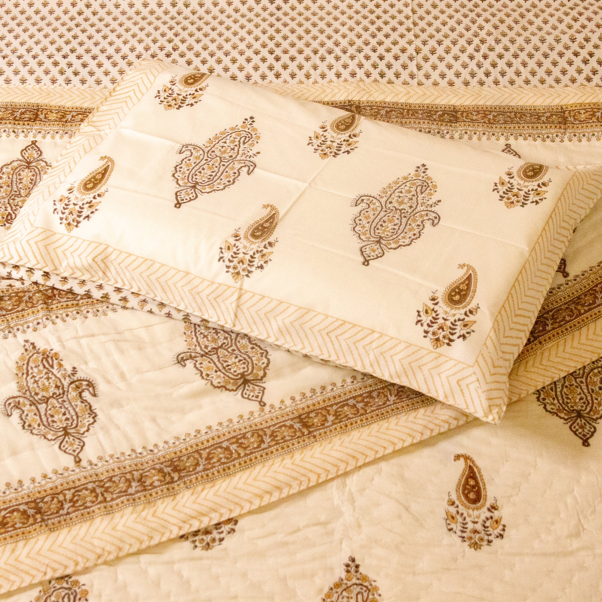 Elevate your home with the Timeless Beauty of Handblock Printed Bedsheets and Quilt Sets. Immerse yourself in the artistry and heritage of our collection, meticulously crafted by skilled artisans using traditional handblock printing techniques. Each piece is a masterpiece, showcasing intricate patterns and vibrant colors that add a touch of elegance to any bedroom.