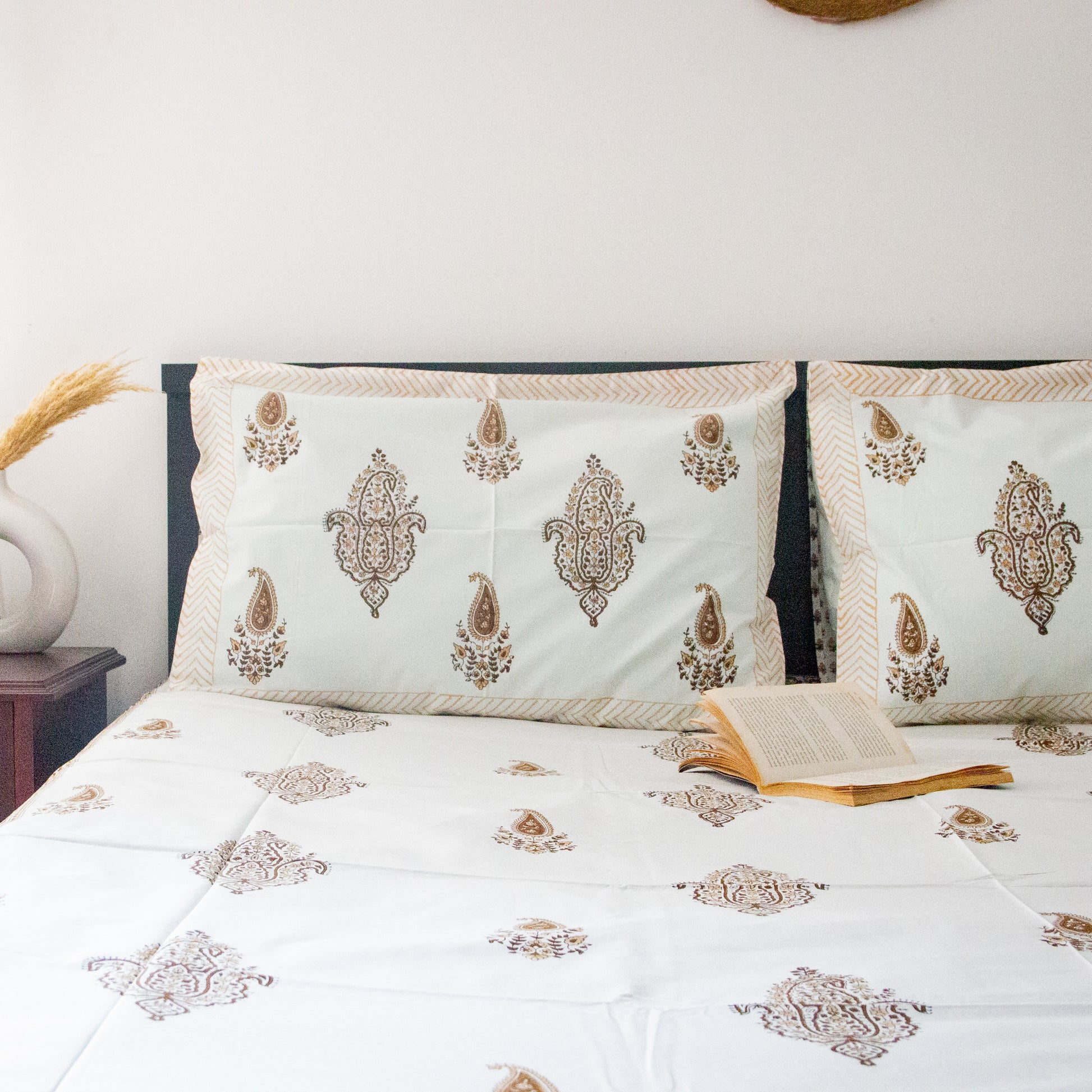 Mocha Hand Block Printed Bed Sheets