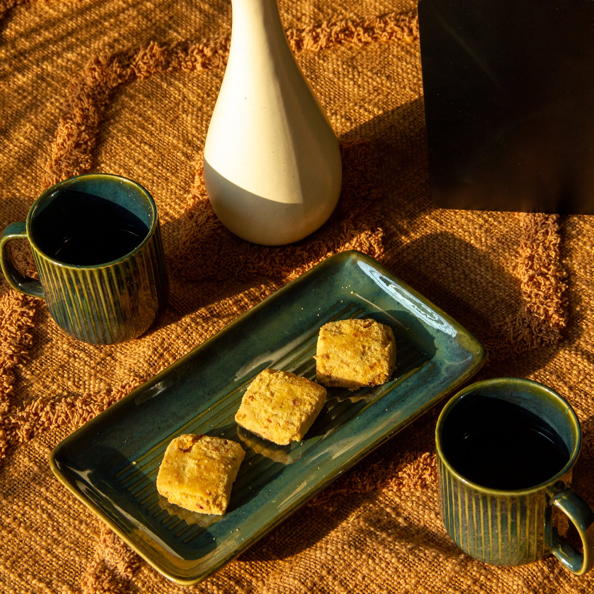 Enhance your daily routine with our stylish and functional mugs and platter set. This set includes two elegant mugs paired with a matching platter, perfect for serving beverages or snacks with style. Crafted for daily use, each piece combines practicality with aesthetic appeal, making it an essential addition to your home. Elevate your everyday experience with this charming set that effortlessly blends style and utility.