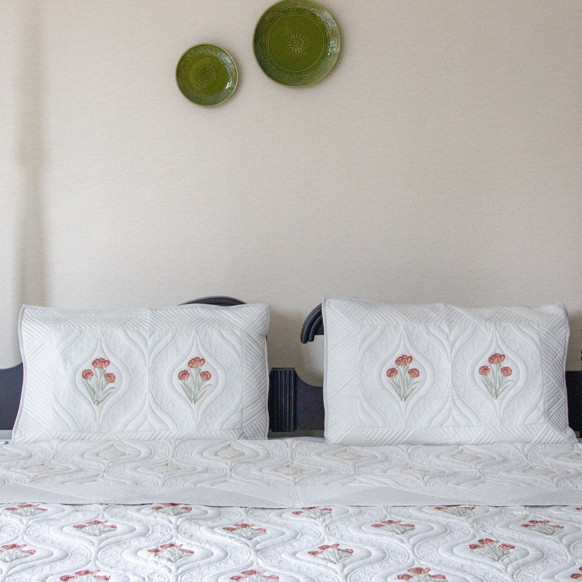 Chrysanthemum Hand Block Printed Quilted Bedspread