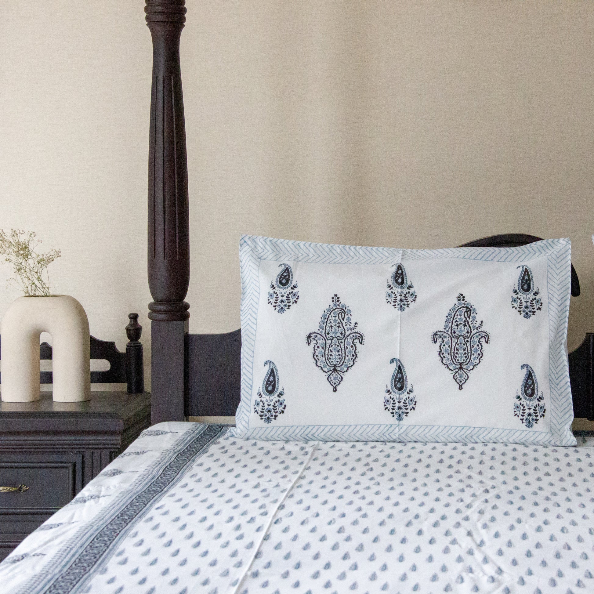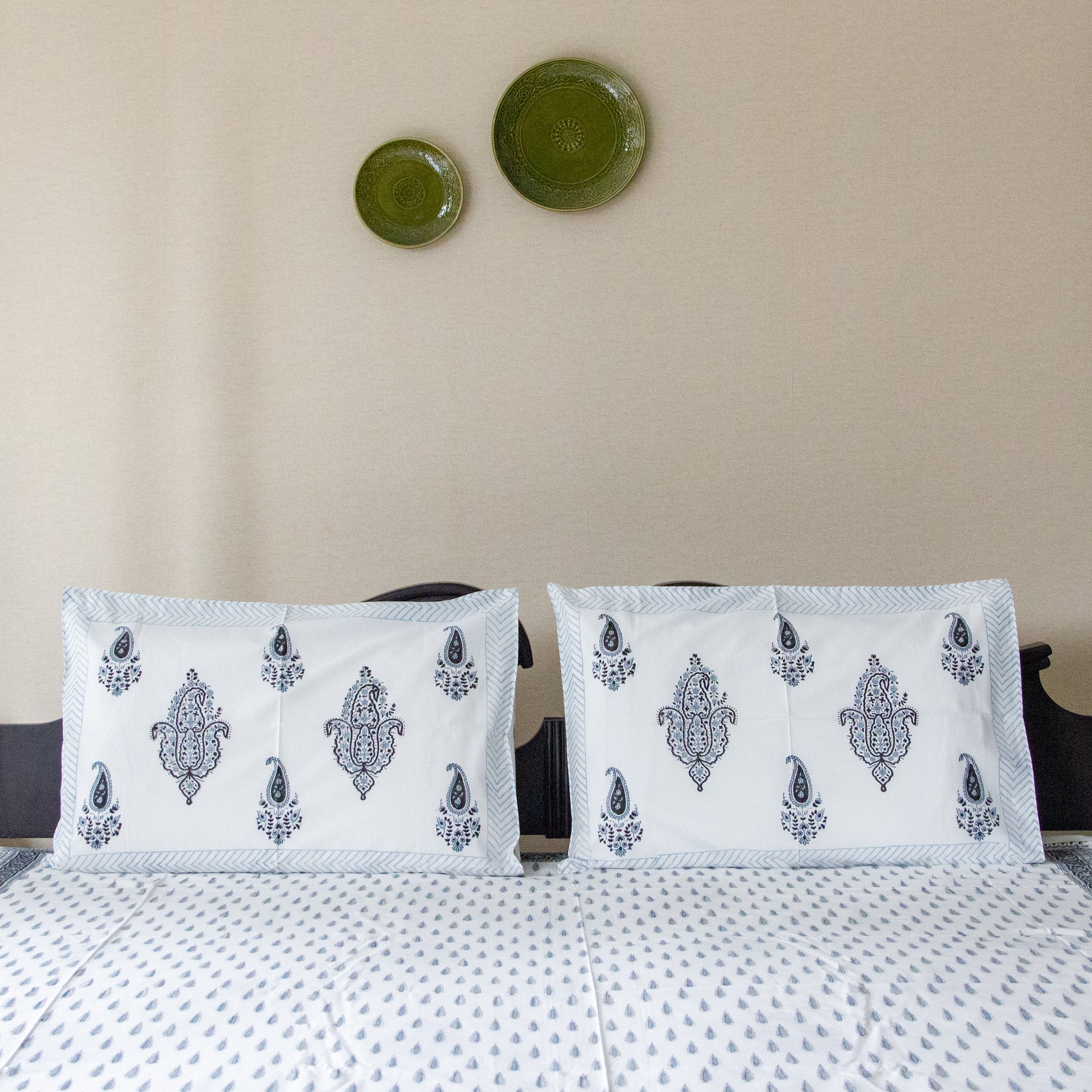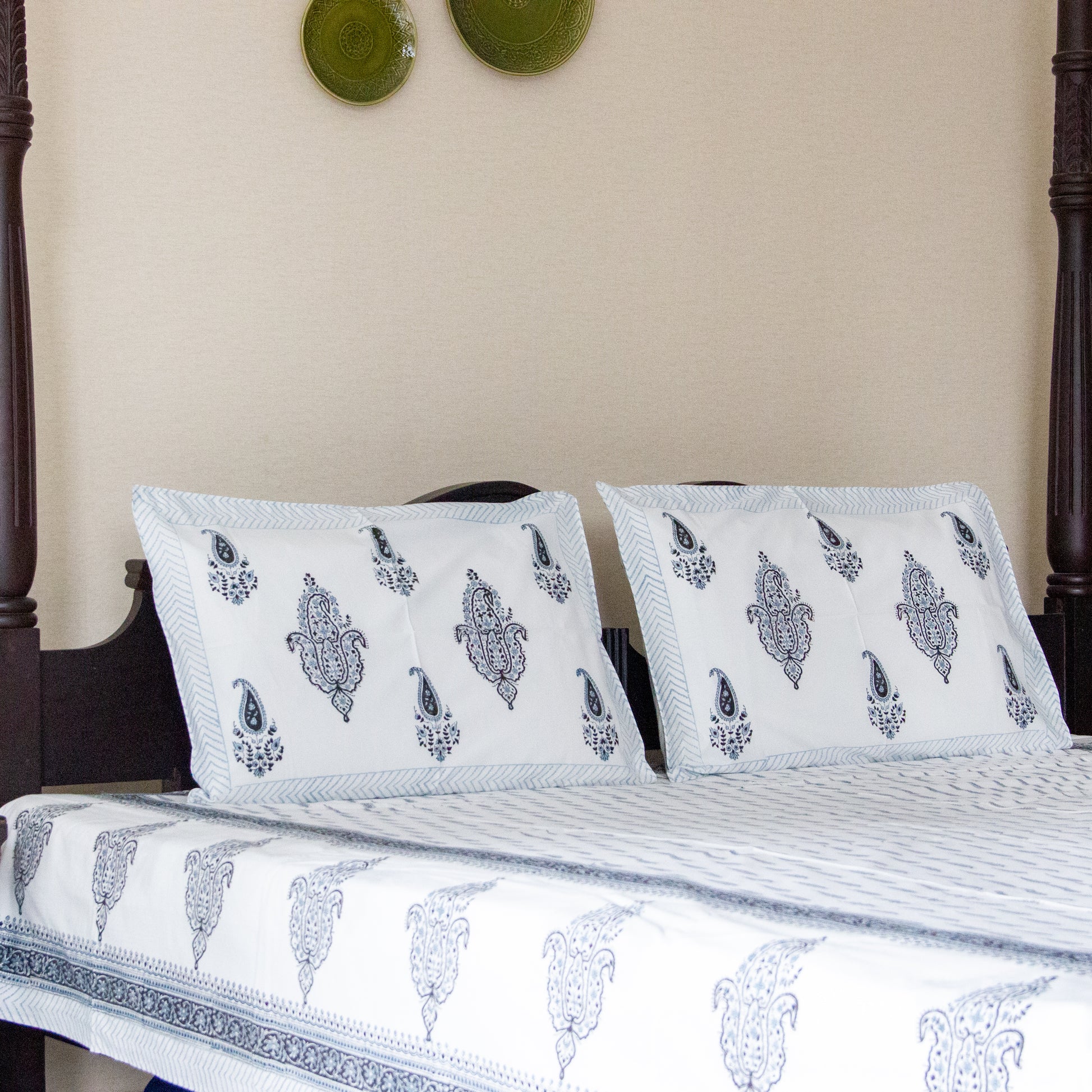 Hand block printed bedsheets are bed linens that are adorned with intricate designs created using a traditional printing method known as block printing. This process involves stamping a block made of wood or other materials with a design carved into it onto a piece of fabric, creating a pattern or motif that is repeated across the fabric.