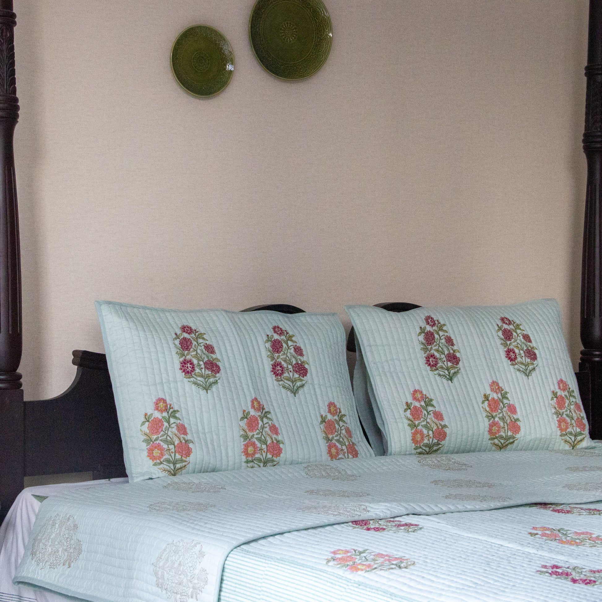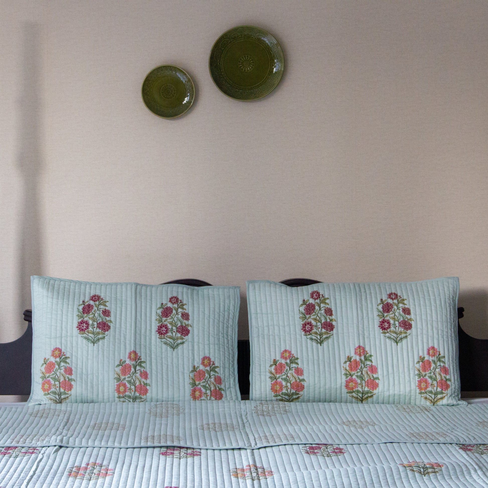 Reversible quilted bed covers are bedding accessories that are designed with a quilted construction, made by stitching together multiple layers of fabric to create a thick, warm cover that can be used to keep a bed cozy and comfortable. These bed covers have two different patterns or colours on each side, allowing you to switch up the look of your bedding depending on your mood or decor.