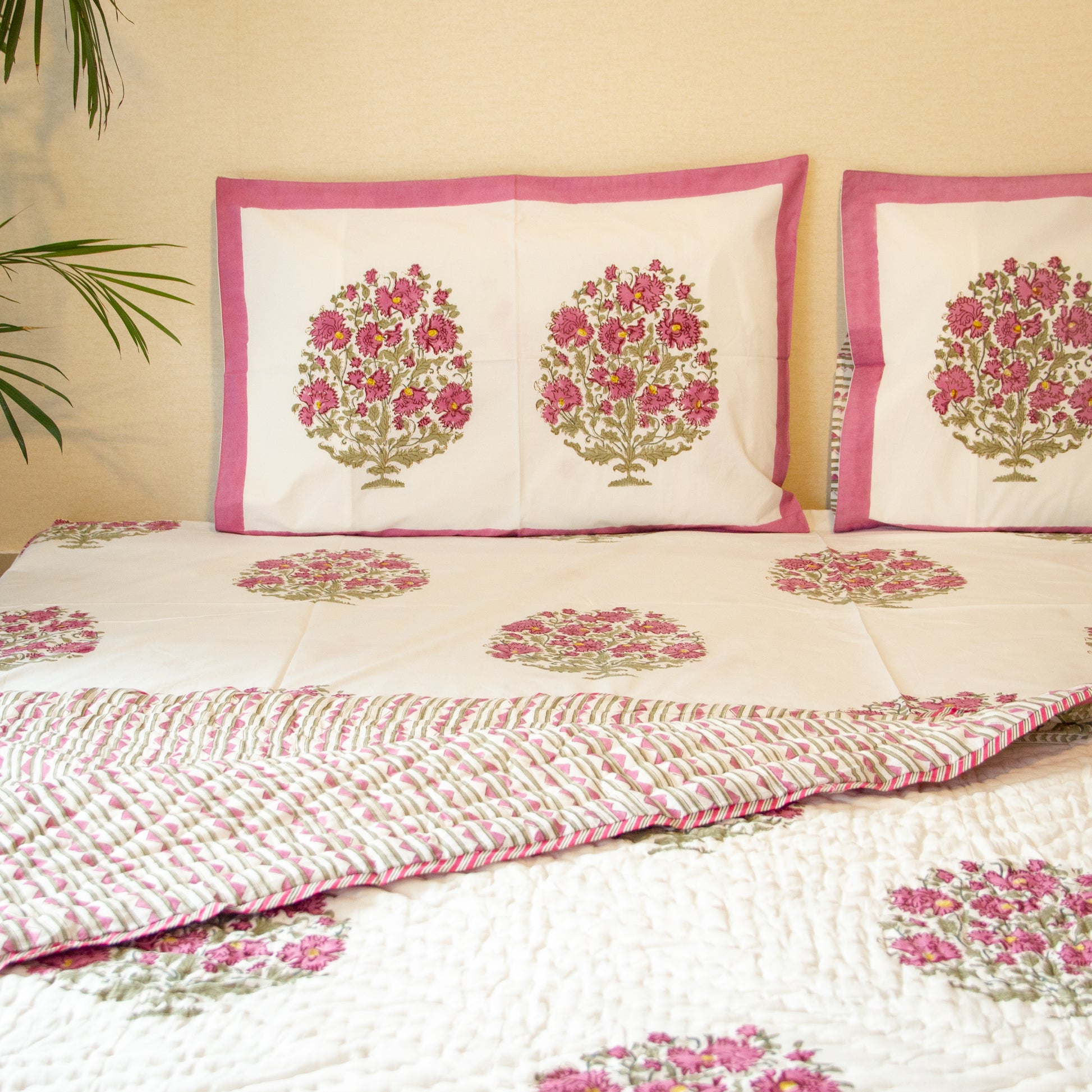 Elevate your home with the Timeless Beauty of Handblock Printed Bedsheets and Quilt Sets. Immerse yourself in the artistry and heritage of our collection, meticulously crafted by skilled artisans using traditional handblock printing techniques. Each piece is a masterpiece, showcasing intricate patterns and vibrant colors that add a touch of elegance to any bedroom.
