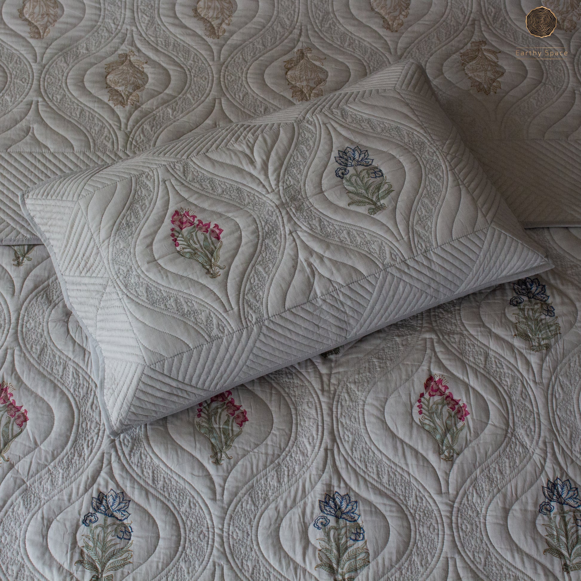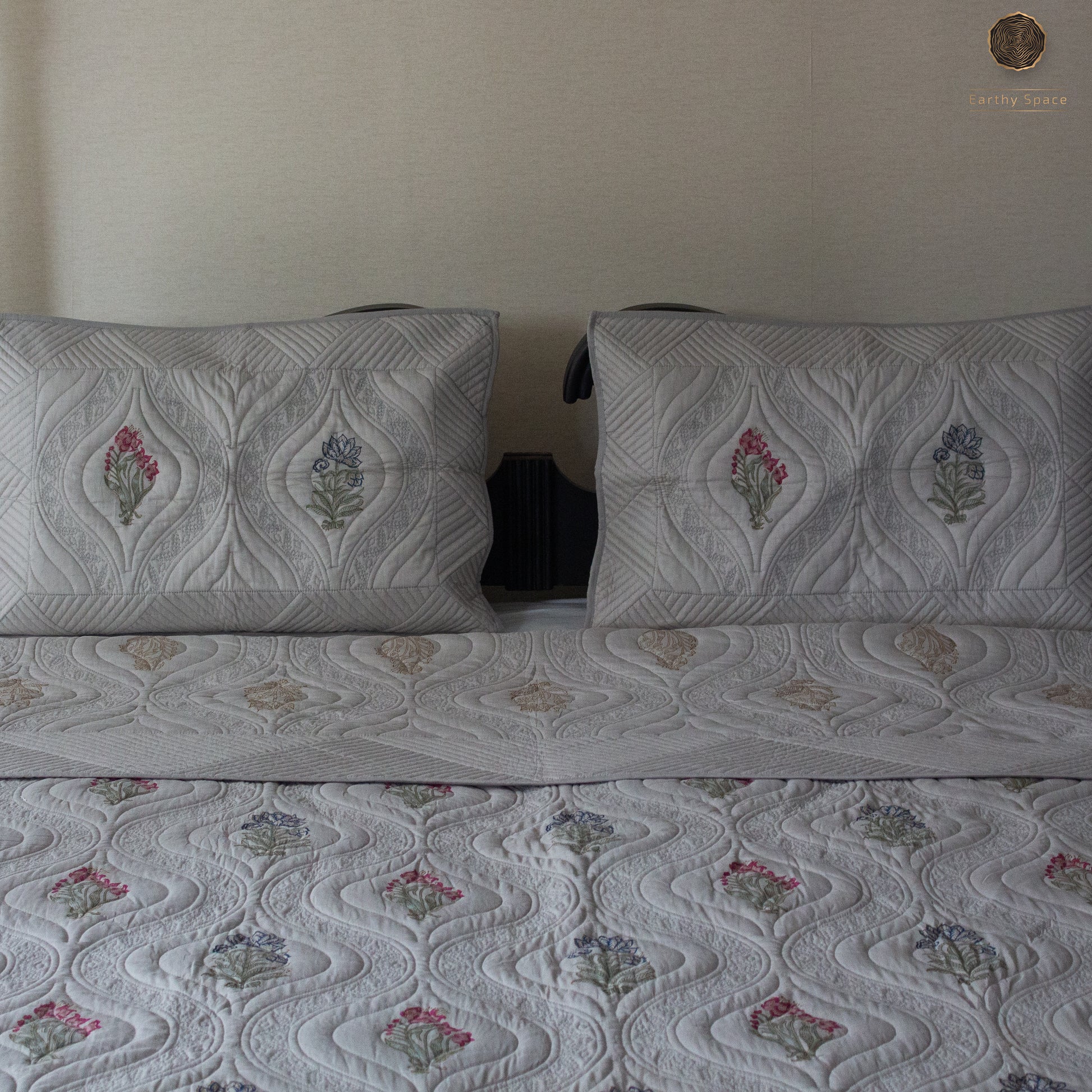 Reversible quilted bed covers are bedding accessories that are designed with a quilted construction, made by stitching together multiple layers of fabric to create a thick, warm cover that can be used to keep a bed cozy and comfortable.