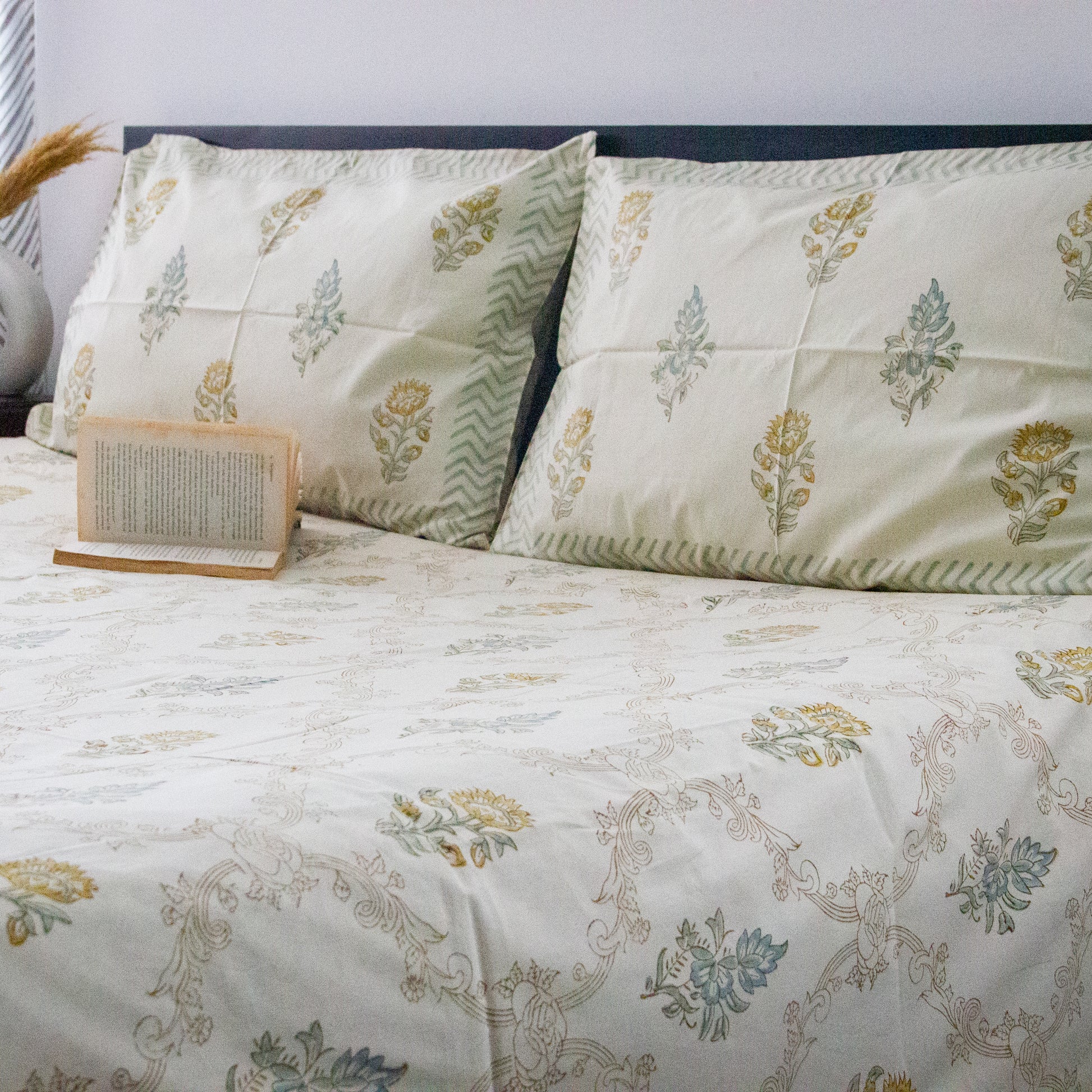Springtime Serenity Handblock Print Bedsheet