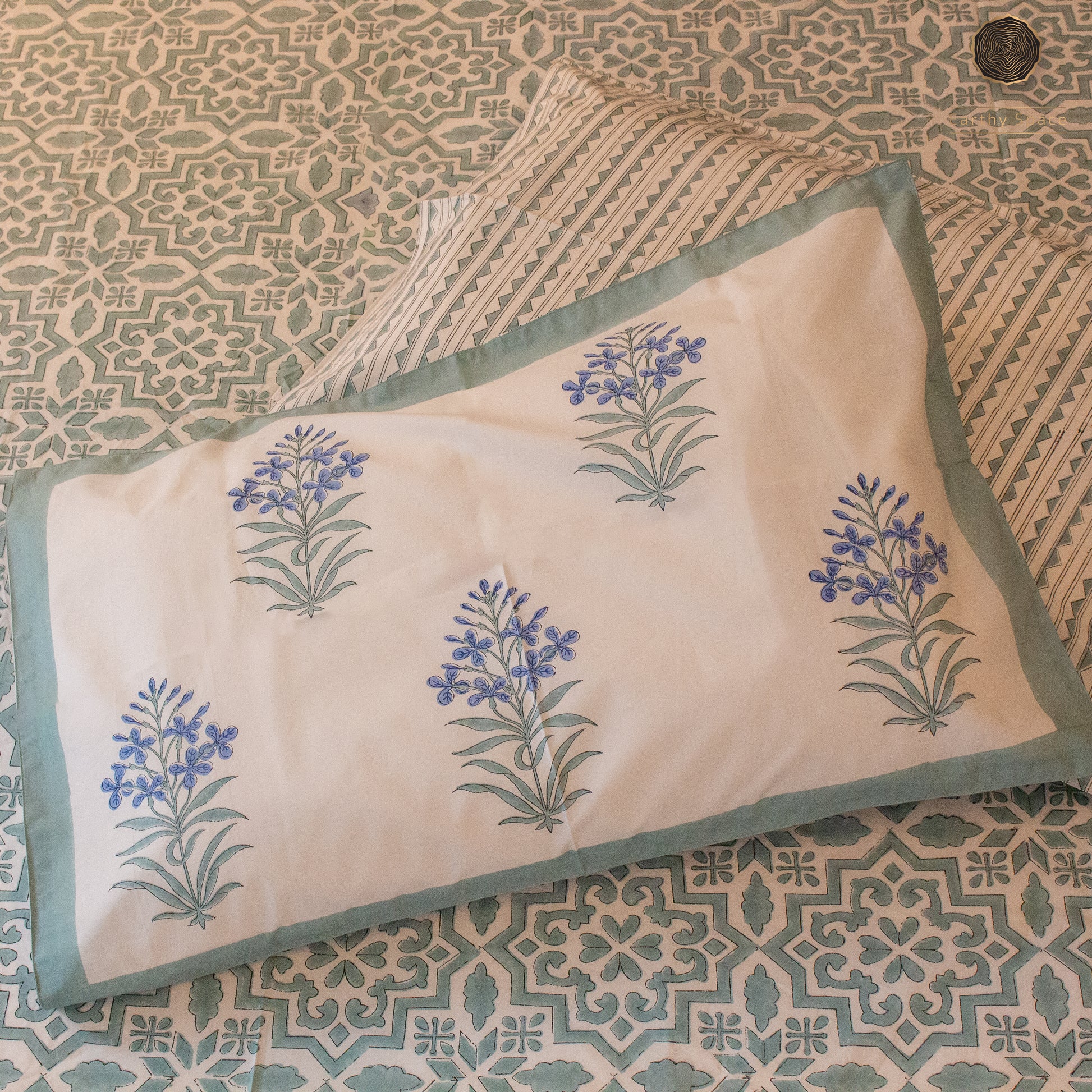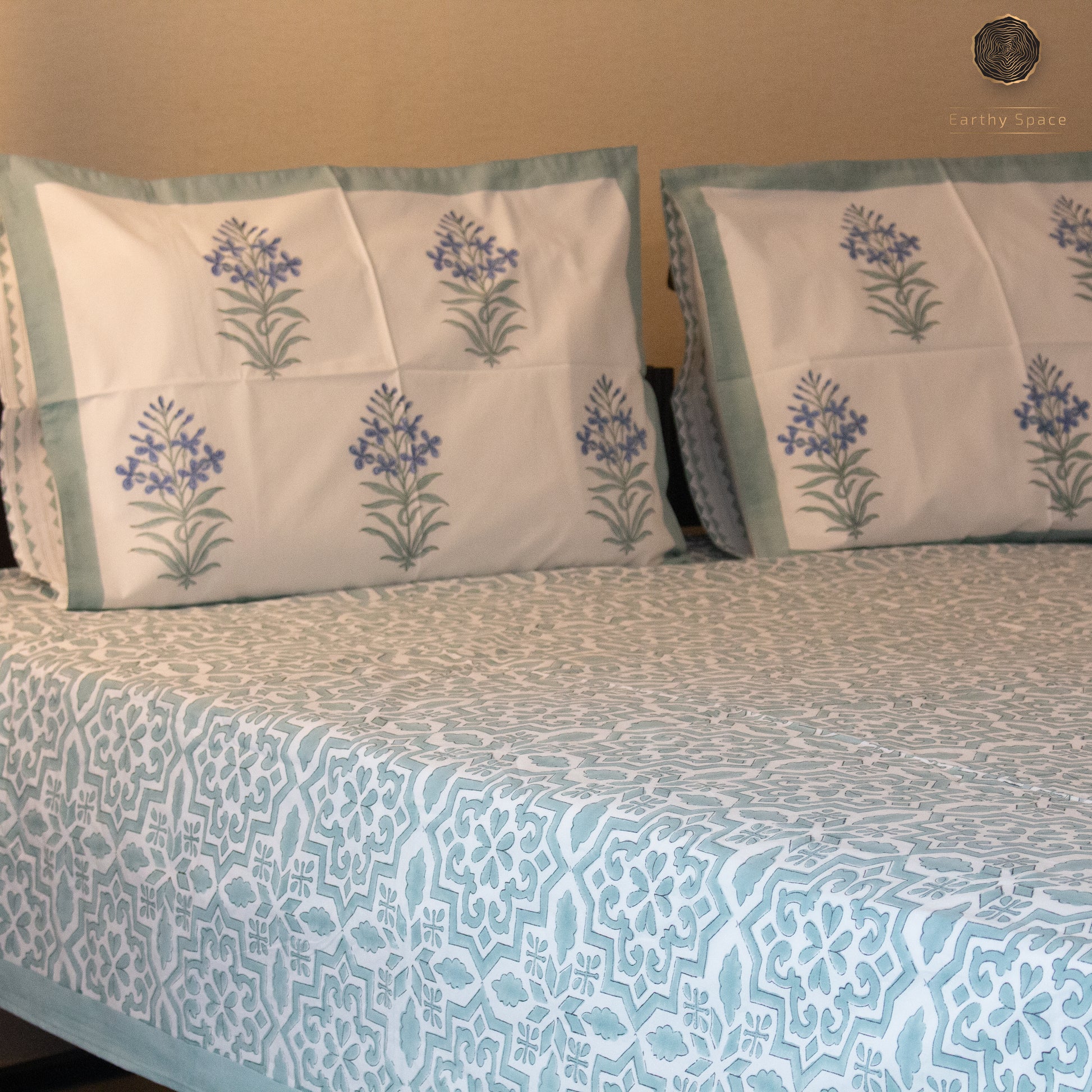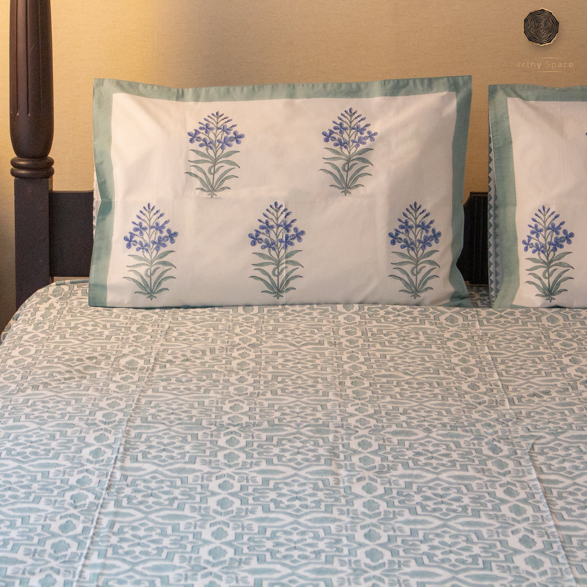 TULA - Icy Green - Hand Block Printed BedSheet