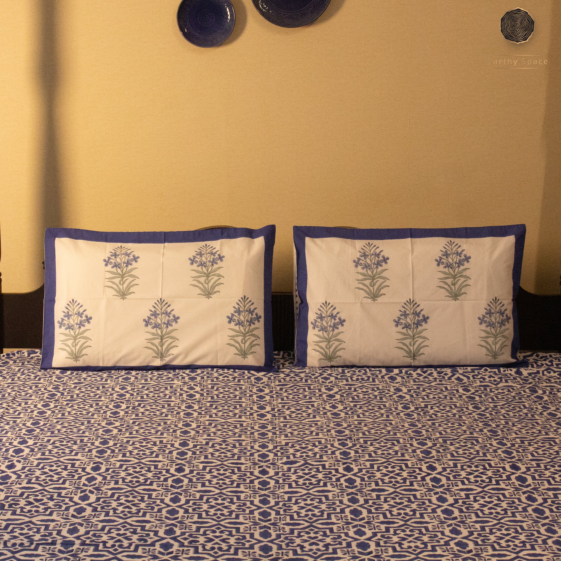 TULA - Navy Blue - Hand Block Printed BedSheet