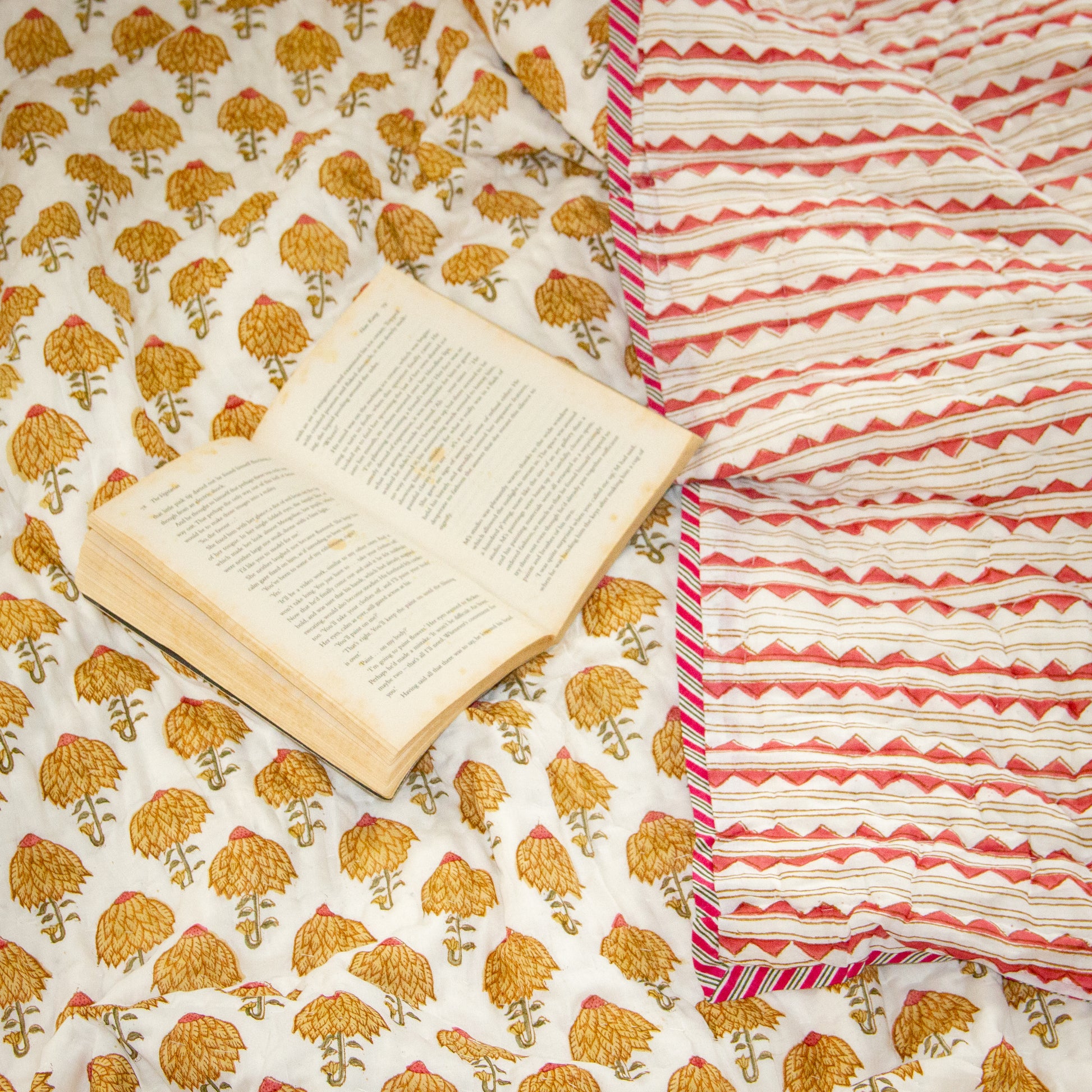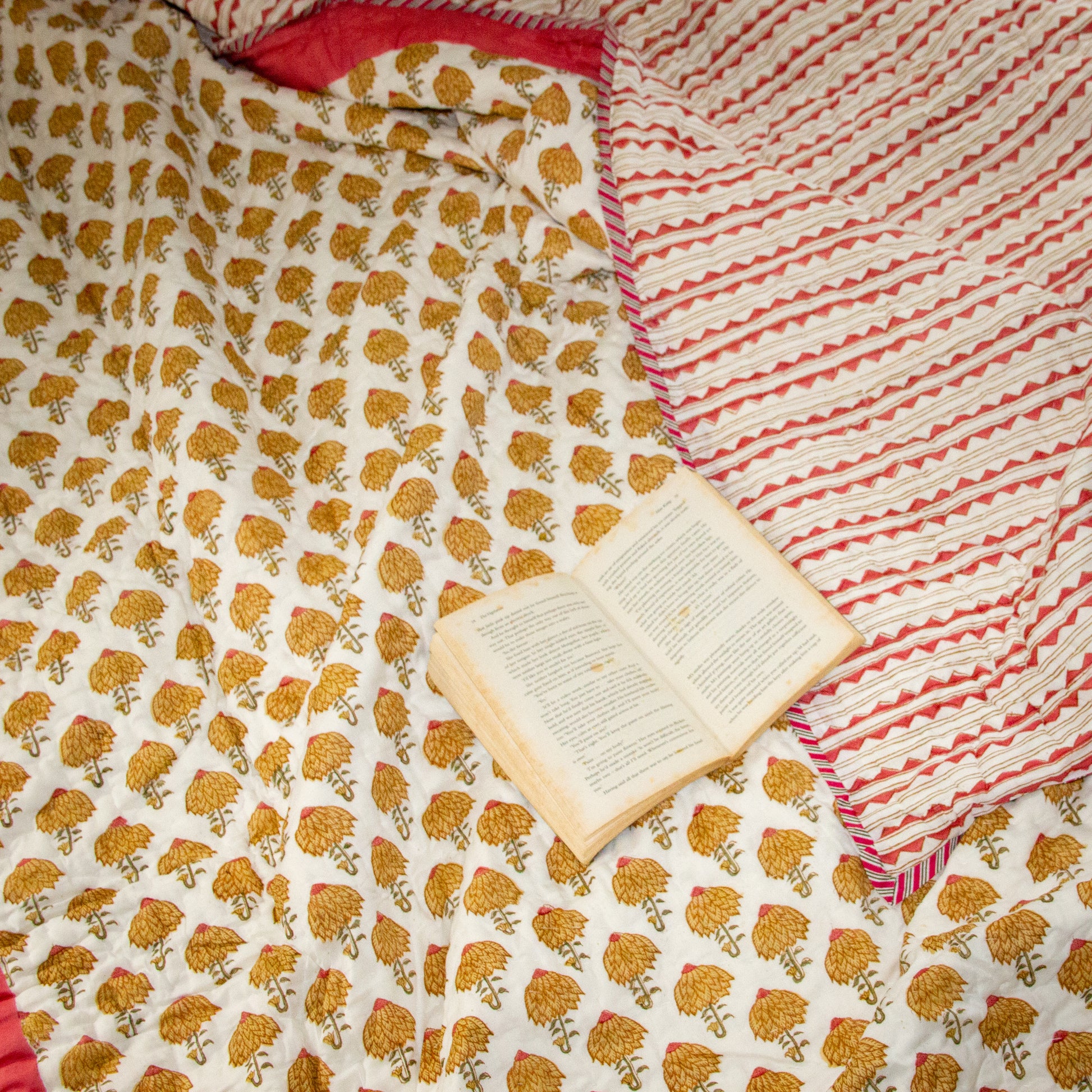 Zinnia Hand Block Printed Reversible Quilt